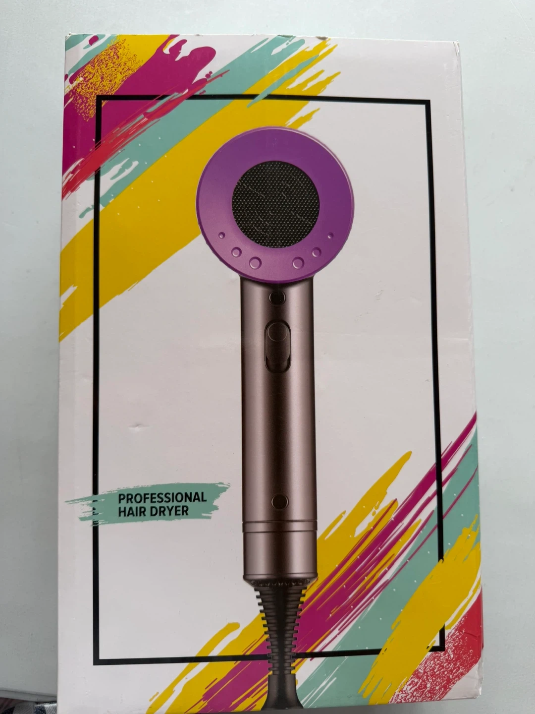 Selling a brand new professional hair dryer! It's an iron gray and fuchsia colour option and comes with all the attachments. This dryer has a rated voltage/rated power output of AC 220-240V/50Hz 2000W and AC 110 125V/60Hz 1800W. Made in China and comes in the original box!