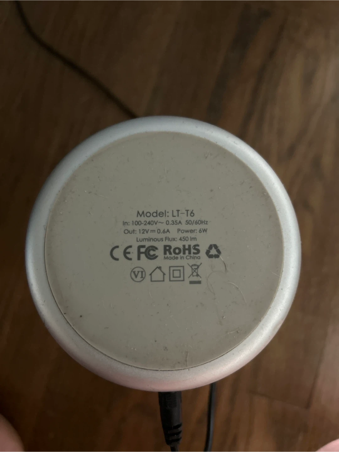Selling a color-changing bedside lamp! It's in good condition and provides a nice ambient light. The model number is LT-T6. It uses 6W of power and has a luminous flux of 450 lm.