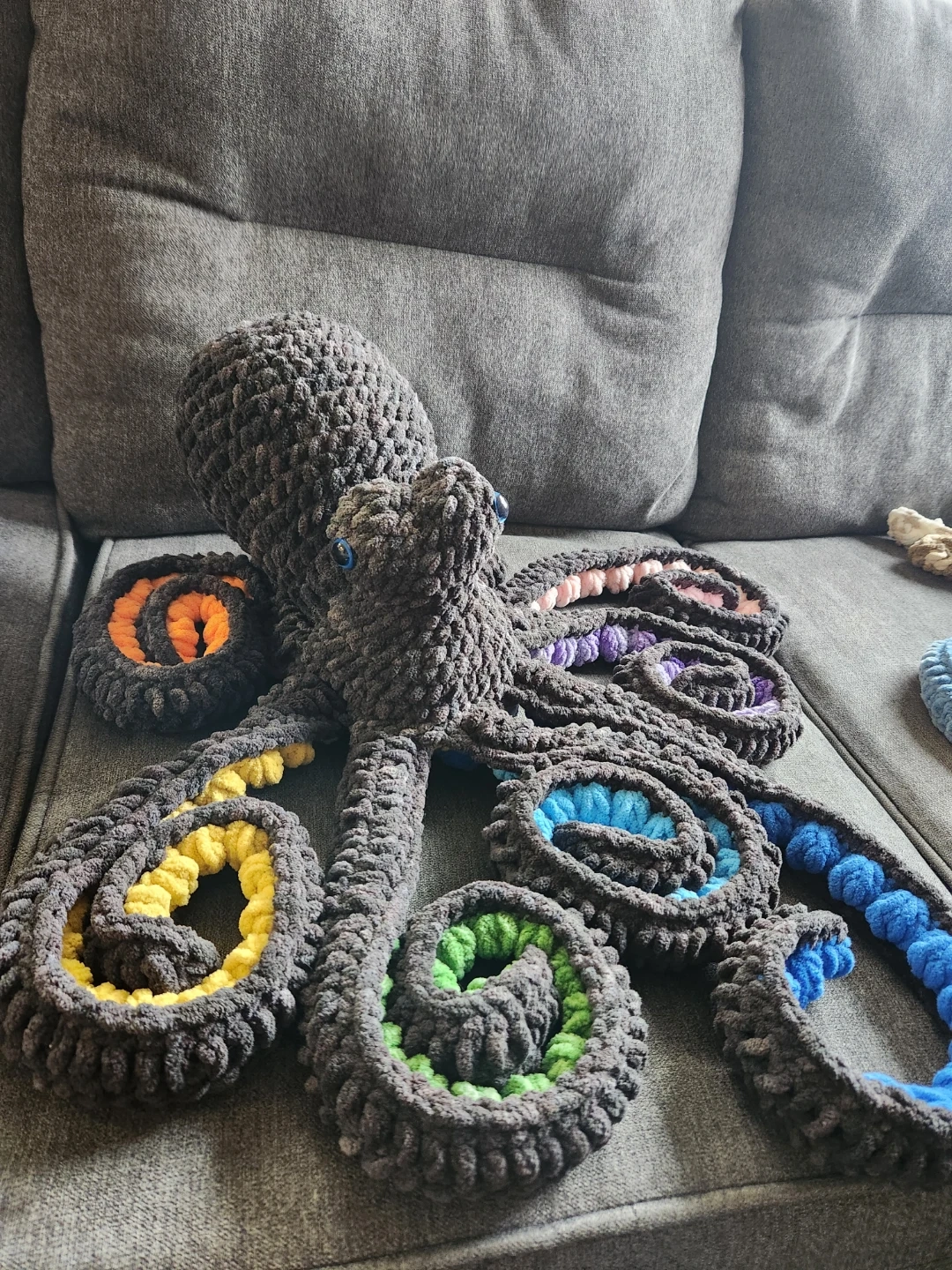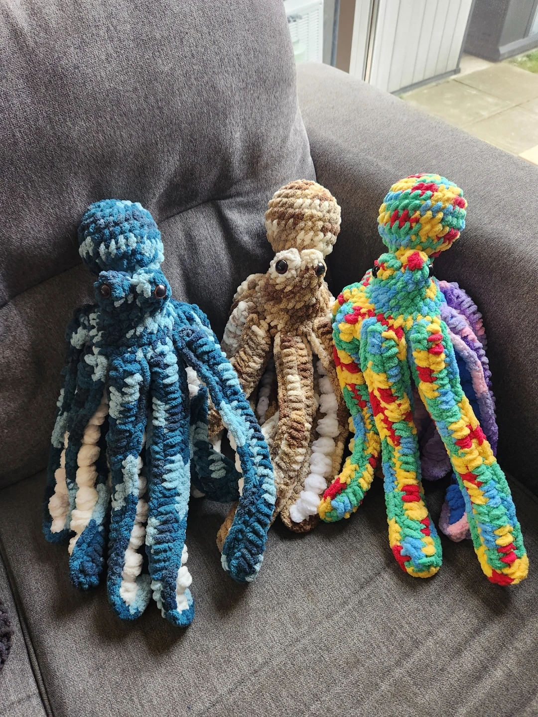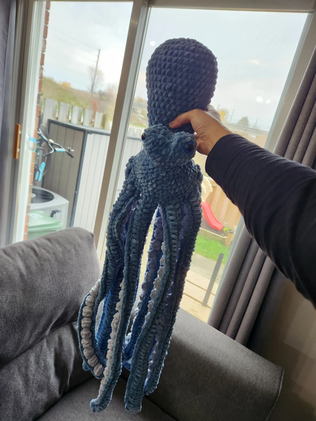 Selling a super cute, handmade crochet octopus plushie! It's a soft, cuddly friend, perfect for kids or anyone who loves unique, handcrafted items. This one is a lovely shade of blue, but I have others available too!