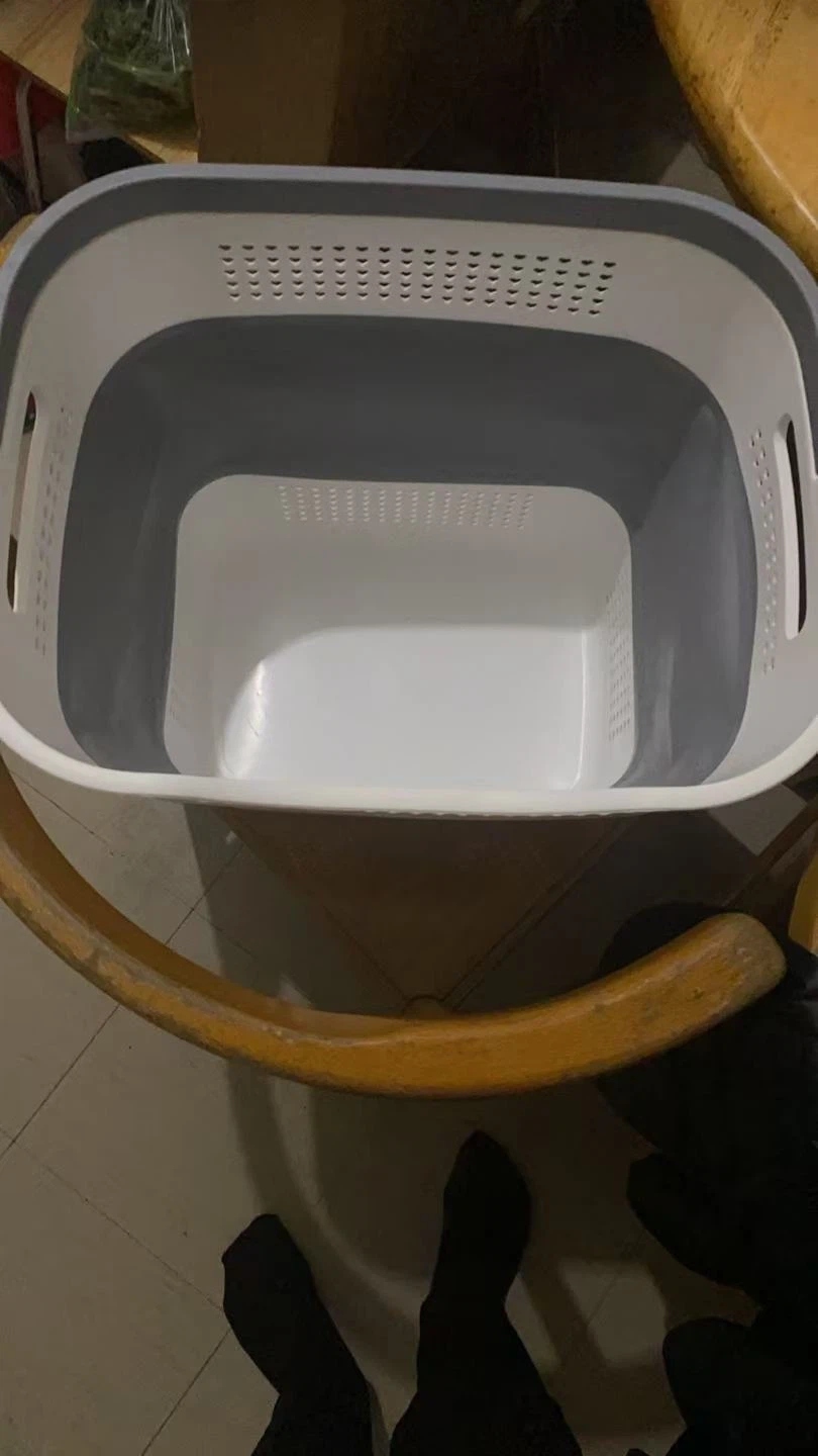Selling a handy collapsible laundry basket! It's in great shape and perfect for saving space when not in use. The basket is a nice combination of white and grey, making it a stylish addition to any laundry room or closet