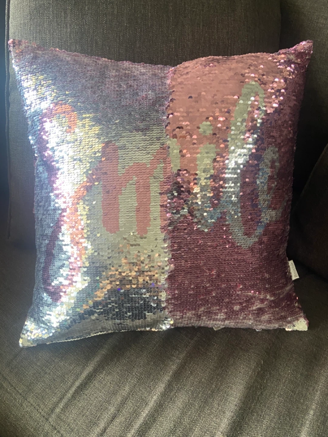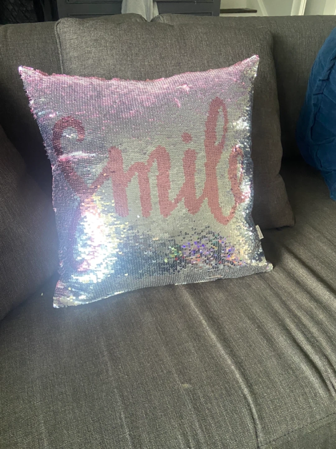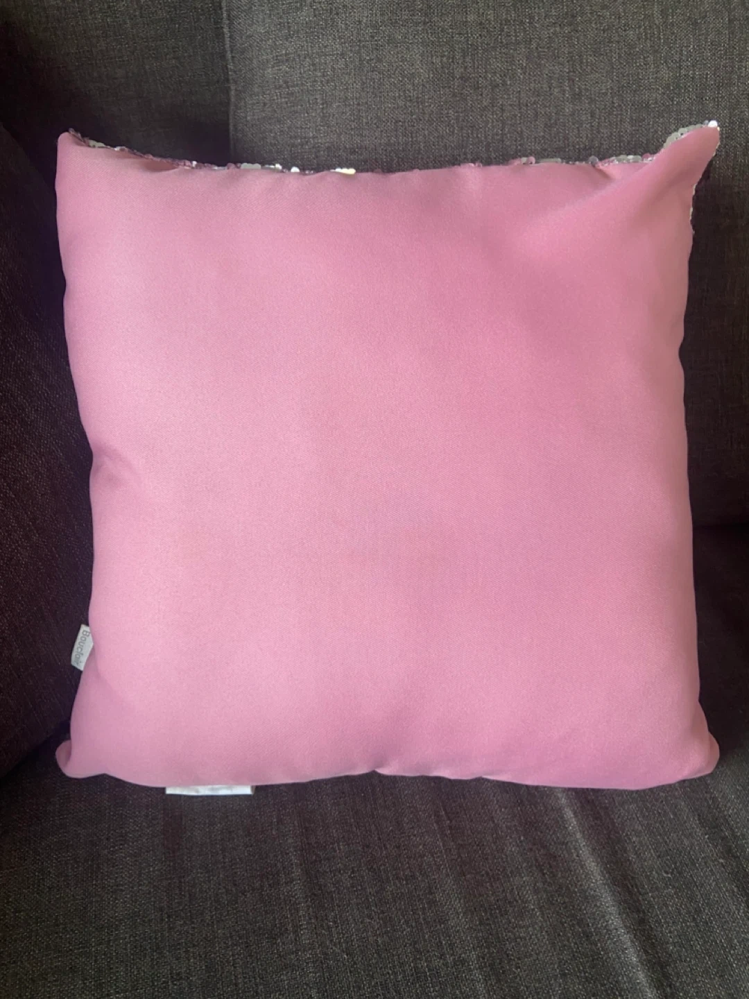 Add a touch of sparkle to your space with this Bouclair flip sequin pillow! One side is a lovely pink, and the other is a shimmering silver. It's in great condition and ready to brighten up your home. Smk-free home