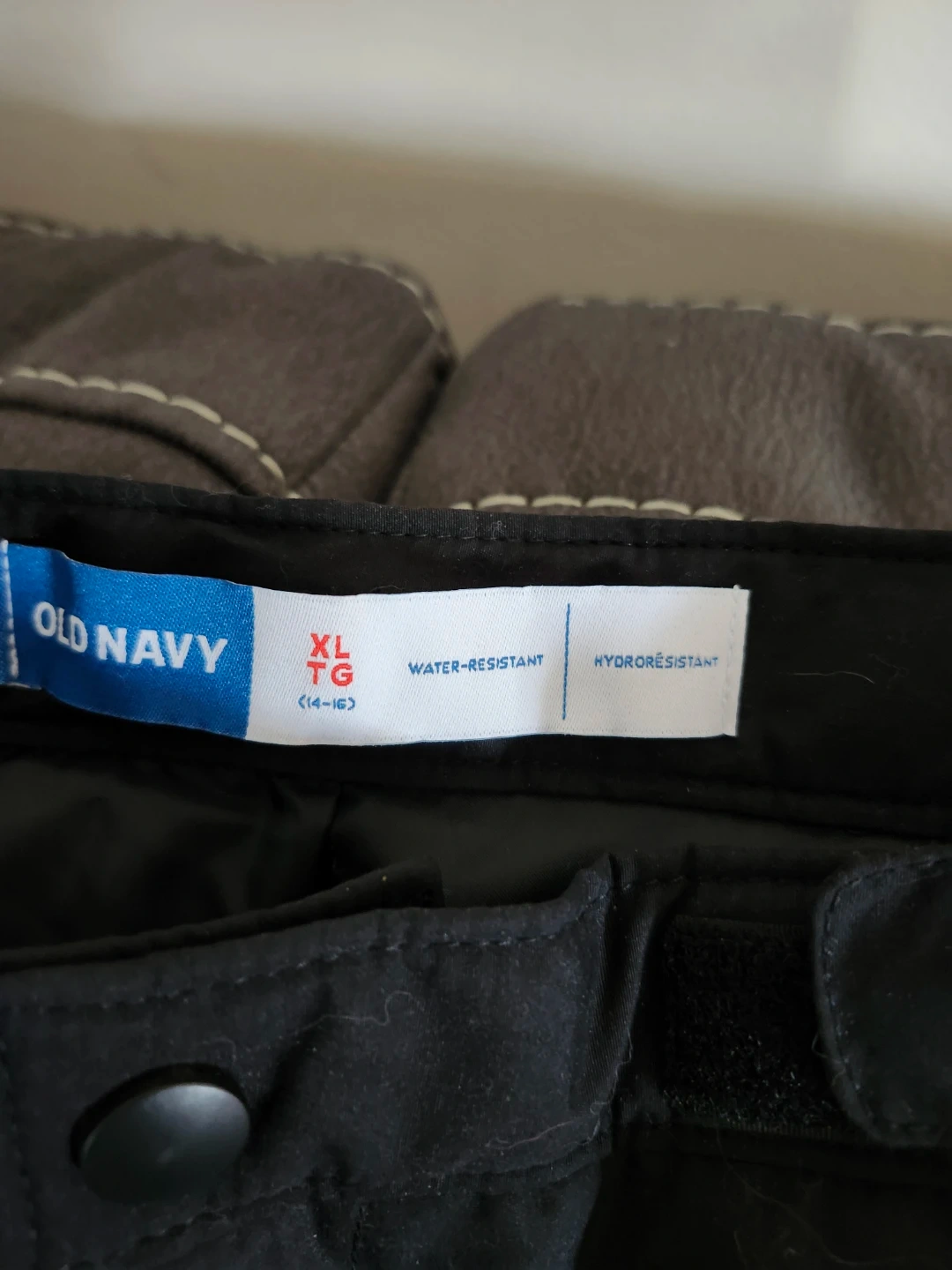 Selling a pair of Old Navy boys snow pants in size XL (14-16). They are black and water-resistant, perfect for winter activities! Brand new, never used