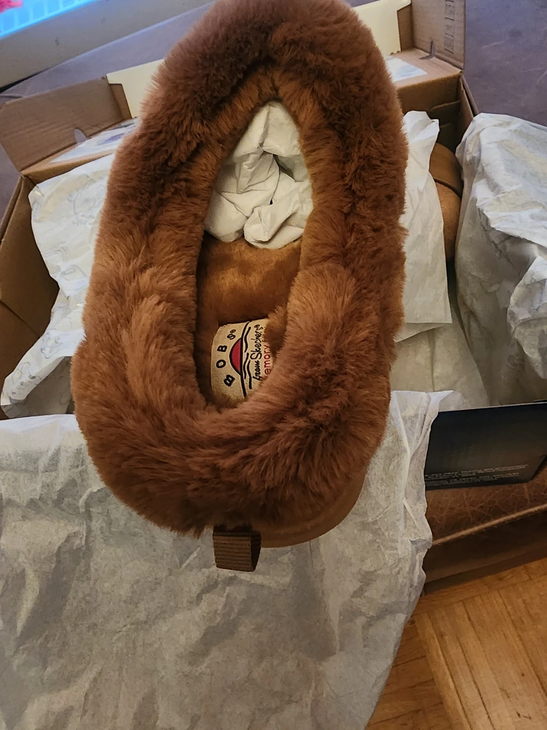 Selling a pair of BOBS from Skechers women's slippers. They come with memory foam for extra comfort and the original box is included!