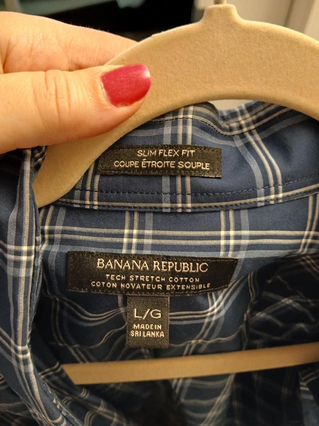 Banana Republic button-down shirt in size large. It's a slim flex fit, made with tech stretch cotton. The shirt is in good condition!