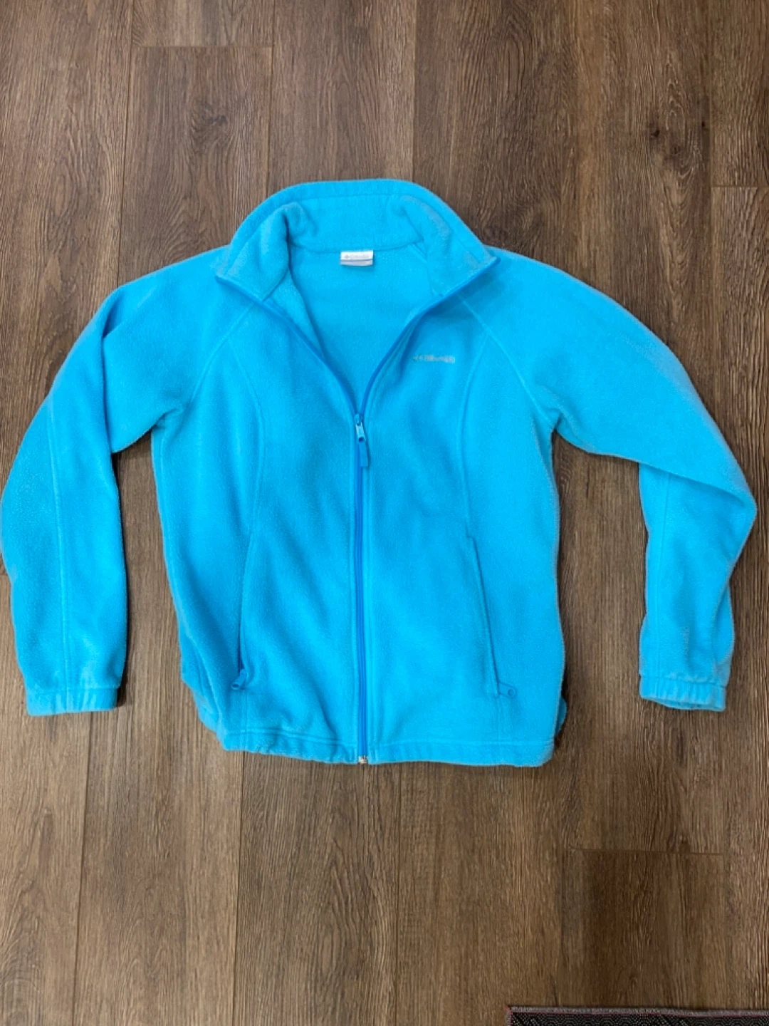 Cozy Columbia fleece jacket in a lovely blue colour. It's a size medium and in great condition. Perfect for layering or wearing on its own during cooler days!