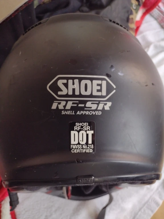 Selling a Shoei RF-SR helmet. It has some wear and tear on the visor as shown in the pictures. Otherwise, it's in good condition and ready to go!