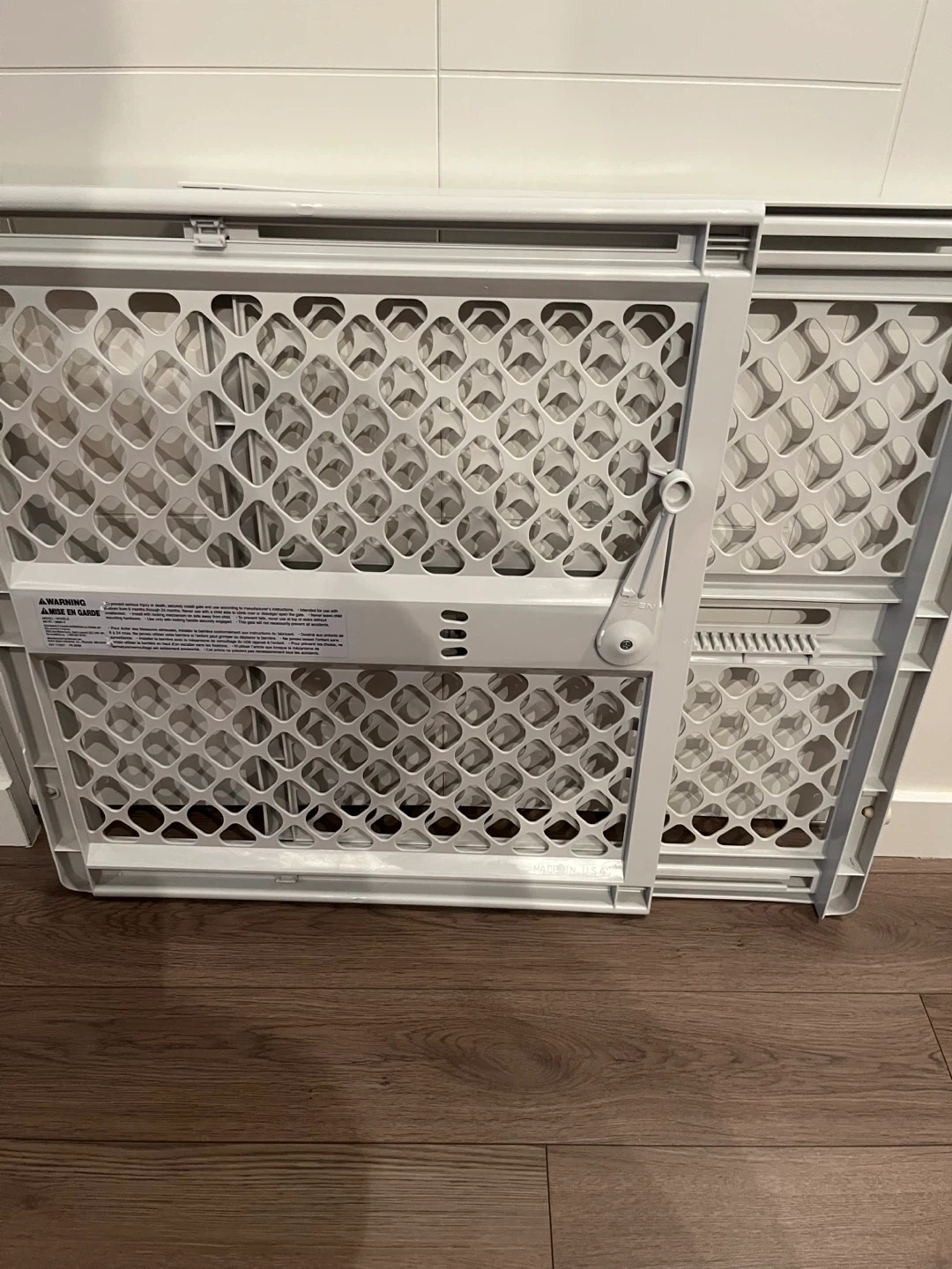 Selling a baby gate in great condition! It's perfect for keeping your little one safe and secure. It's easy to install and use, and it will give you peace of mind knowing your child is protected.