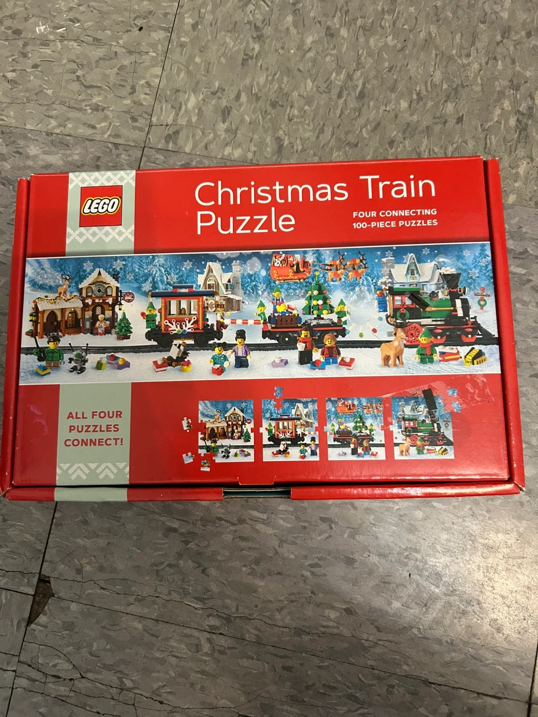 Selling a brand new LEGO Christmas Train Puzzle! It features four connecting 100-piece puzzles, perfect for holiday family fun. The finished puzzle size is 8¼ inches high. The box is included and in great condition