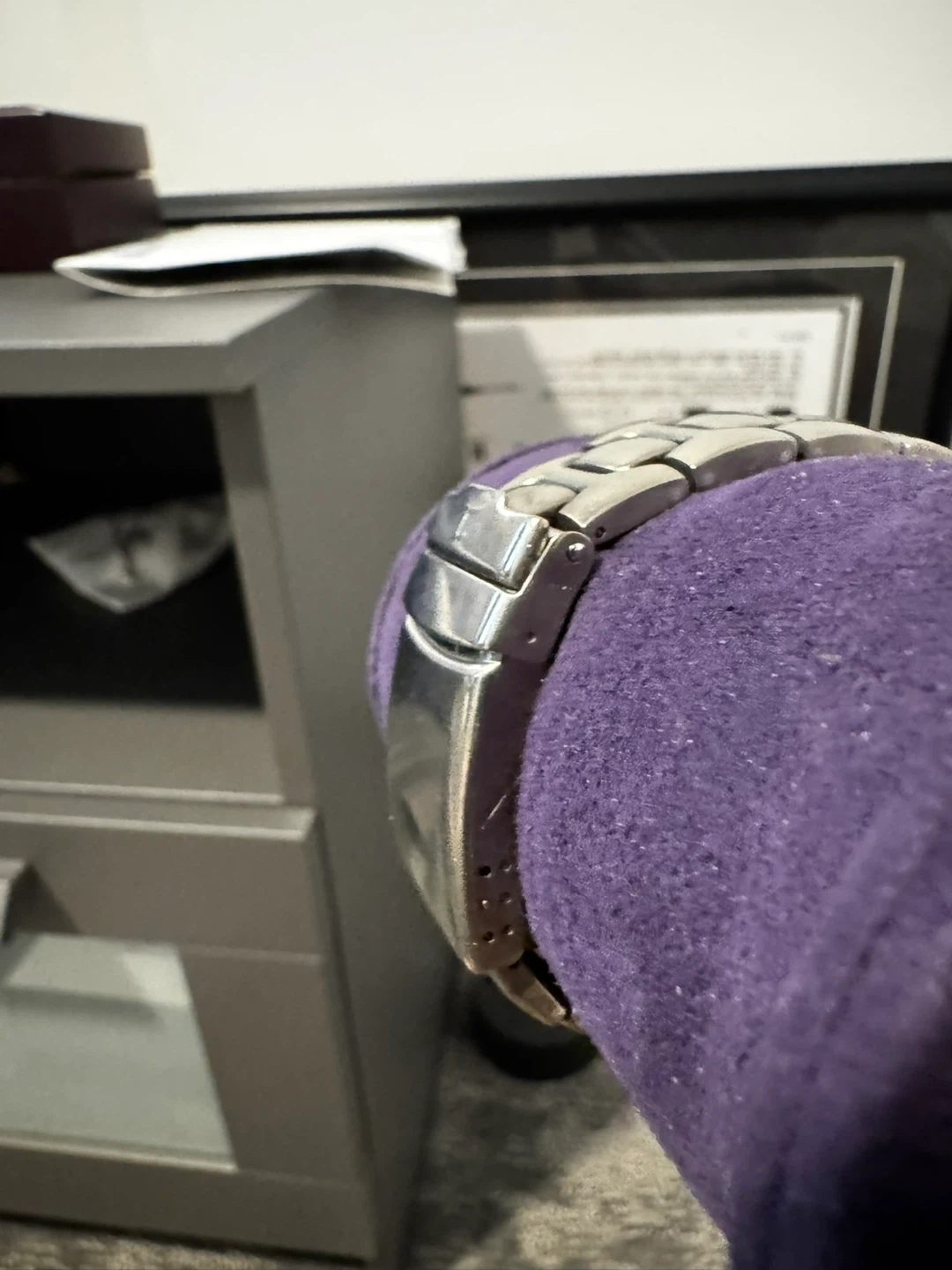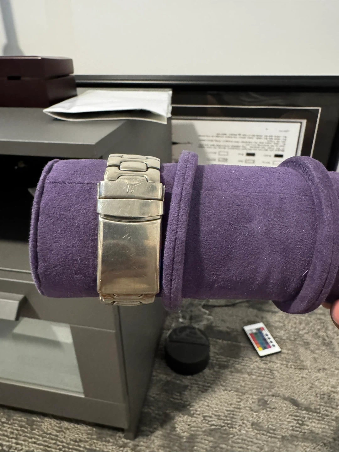 Selling a Tutima DI 300 automatic watch. It features a titanium case and bracelet, a black dial with luminous markers, and a yellow bezel. It shows some signs of wear but is in good working order.