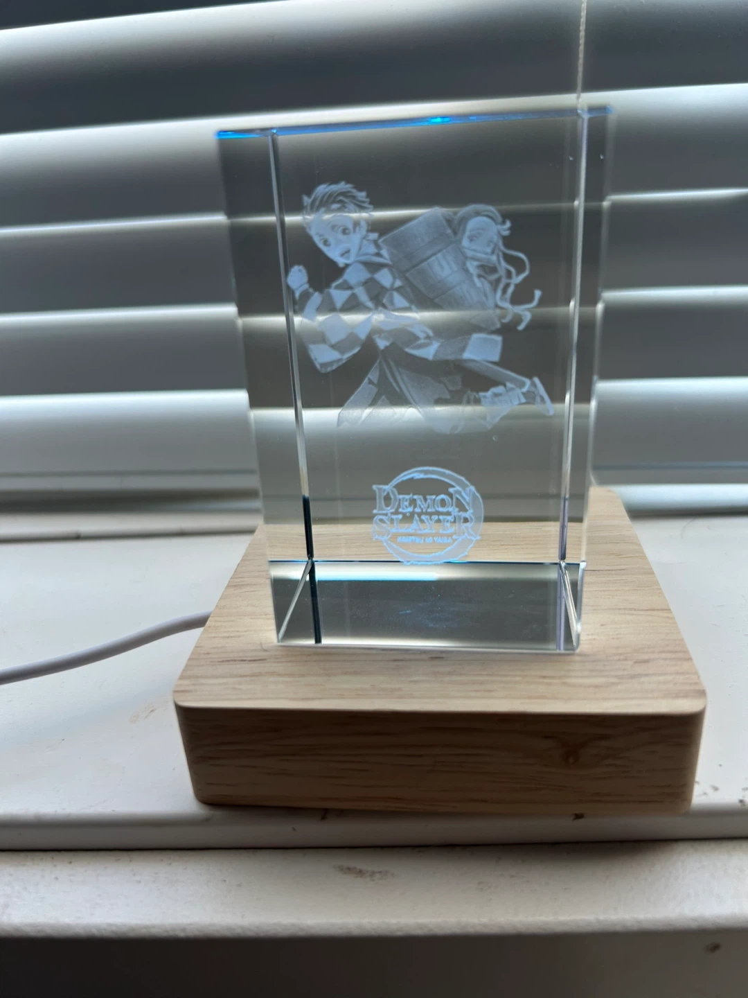 Buy & SellDemon Slayer Crystal Light with BaseDemon Slayer Crystal Light with Base$10Demon Slayer crystal light with a wooden base! It comes with a USB cable and switch to turn it on and off. It's in great condition.ConditionLike new0 chats·1 favorites·8 viewsSELLERIsabellaHeritage Park100 reviewsWHERE TO MEETBy the 7/11