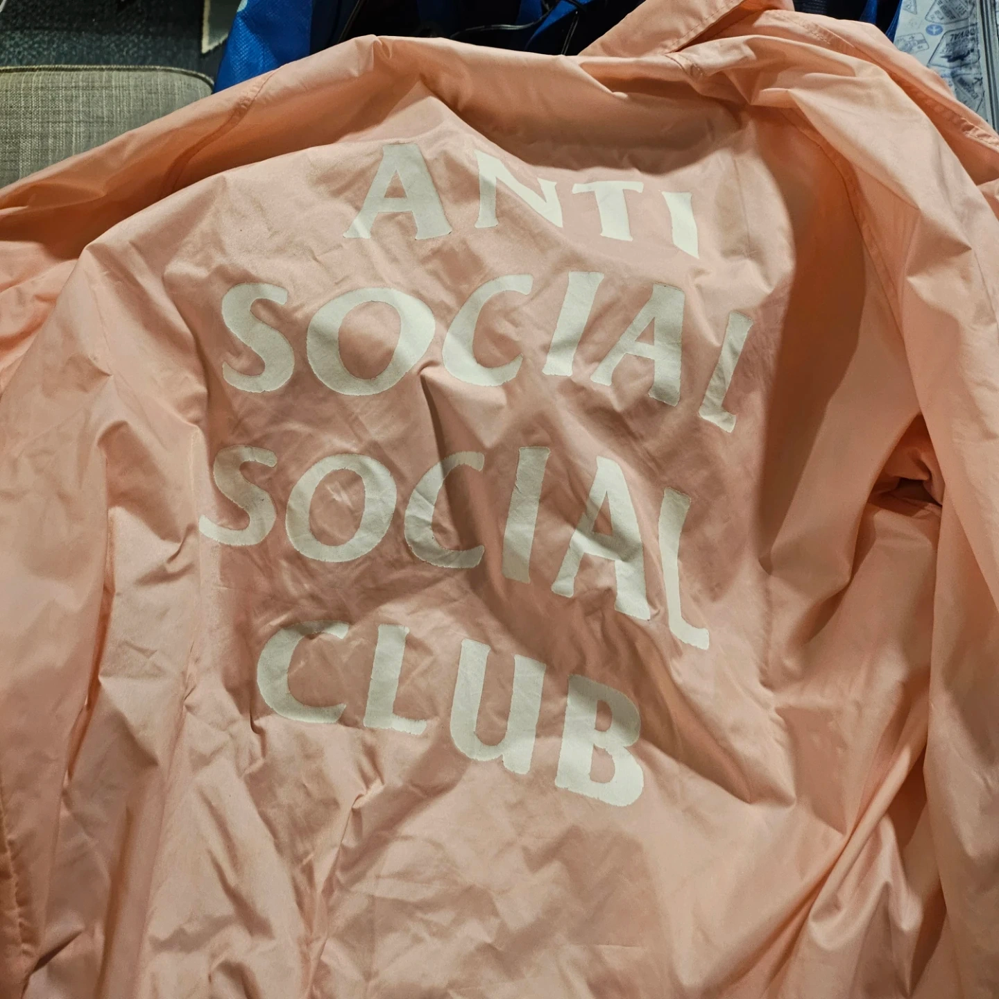 Buy & SellAnti Social Social Club Pink Jacket - XLAnti Social Social Club Pink Jacket - XL$40Selling a light pink Anti Social Social Club jacket in size XL! It's made of 100% nylon shell and 100% polyester lining, perfect for layeringSizexl0 chats·1 favorites·9 viewsSELLERverifiedshayneStoney Creek600 reviewsWHERE TO MEETCheck Location