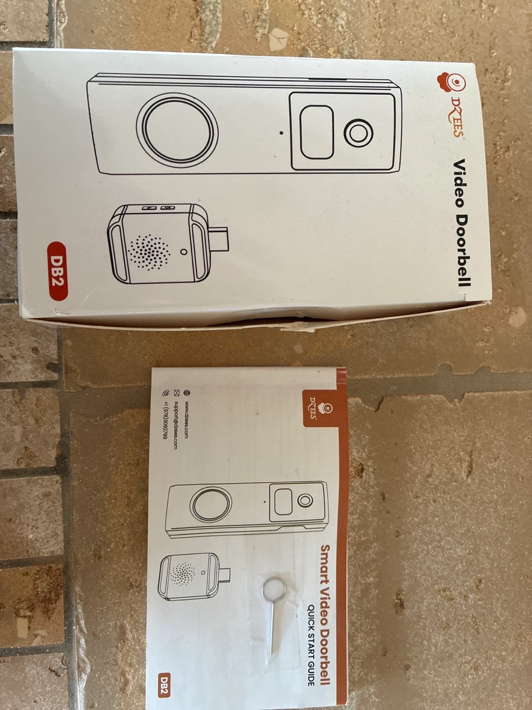 Selling a brand new DCEES DB2 Video Doorbell! It comes with all the original components, including the doorbell, receiver, and charging cable. The box and quick start guide are also included. It's a smart video doorbell, perfect for keeping an eye on your front door.