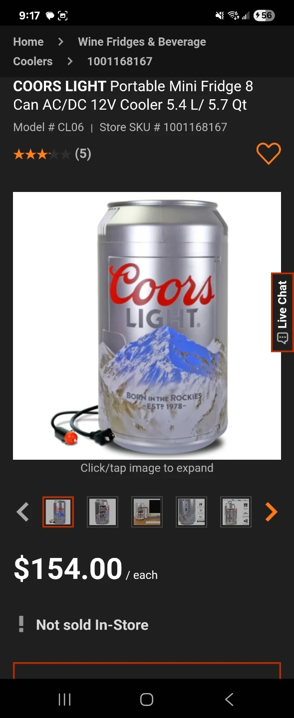 Selling a Coors Light portable mini fridge! It holds 8 cans and is a 12V cooler. It's 5.4 L/5.7 Qt. The model number is CL06. Originally bought for $154