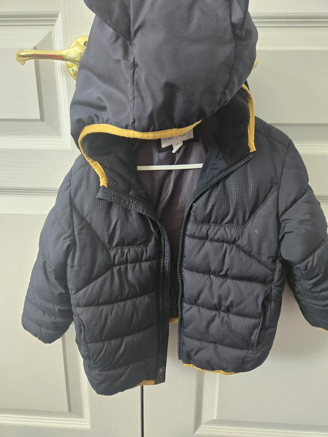 Here's a cute Baby Gap puffer jacket featuring DC Comics branding! It's in great shape and ready to keep your little one warm and cozy.