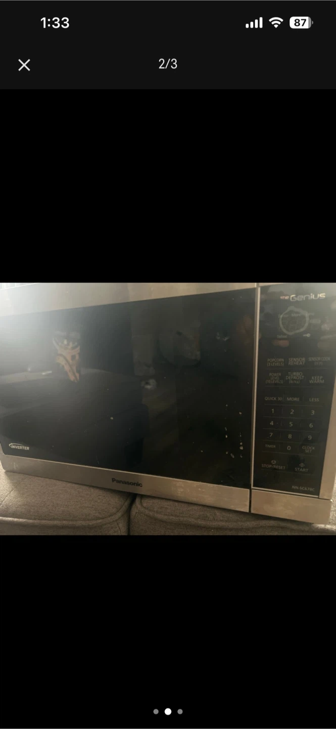 Selling a Panasonic The Genius microwave. It's in good condition and ready for a new home! Perfect for quick meals and reheating leftovers. Has sensor cook and turbo defrost settings