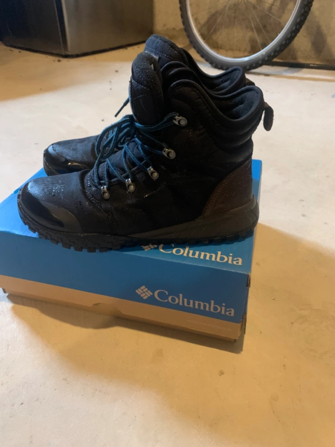 Selling a pair of Columbia Fairbanks Omni-Heat men's boots in size 9.5. These boots are black and waterproof, perfect for winter weather. They also feature 200g insulation to keep your feet warm and cozy. Comes with the original box!