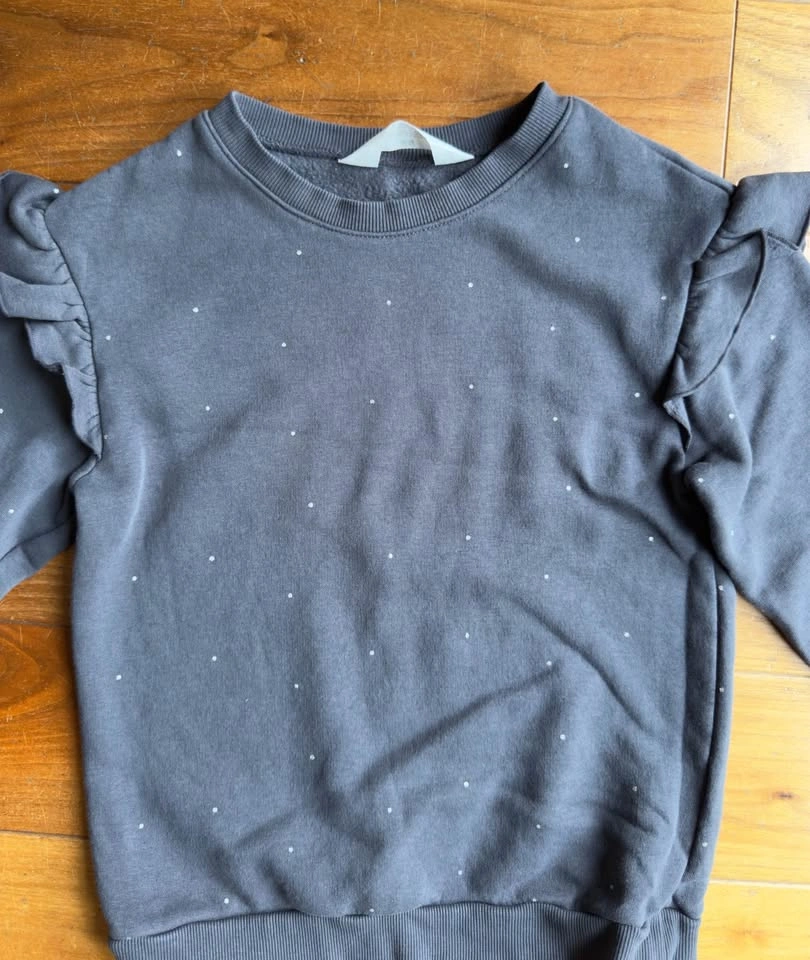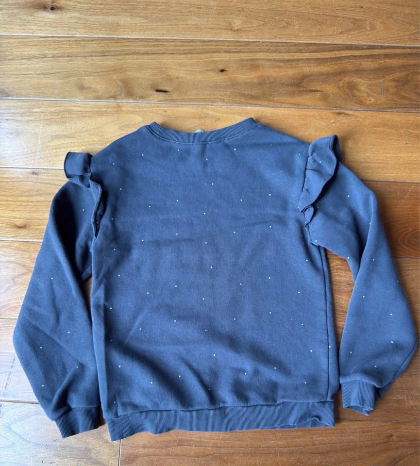 60Girls H&M Sweater Size 8-10 Ruffle Sleeves and Silver Polka Dots Dark Grey Porch PU South Arm