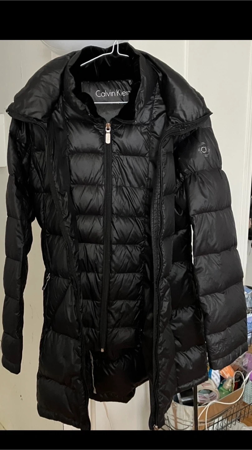 Selling a Women’s Calvin Klein black down lightweight 🪶 puffer coat in size Medium! It's in great condition and perfect for staying warm during the colder months.