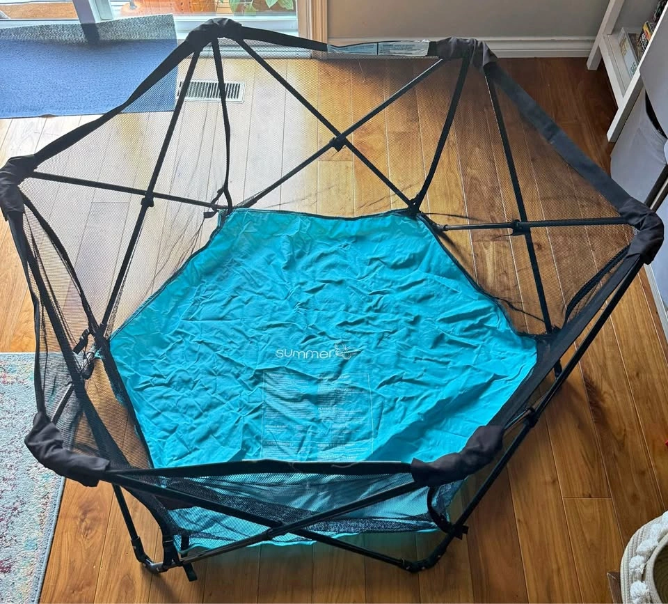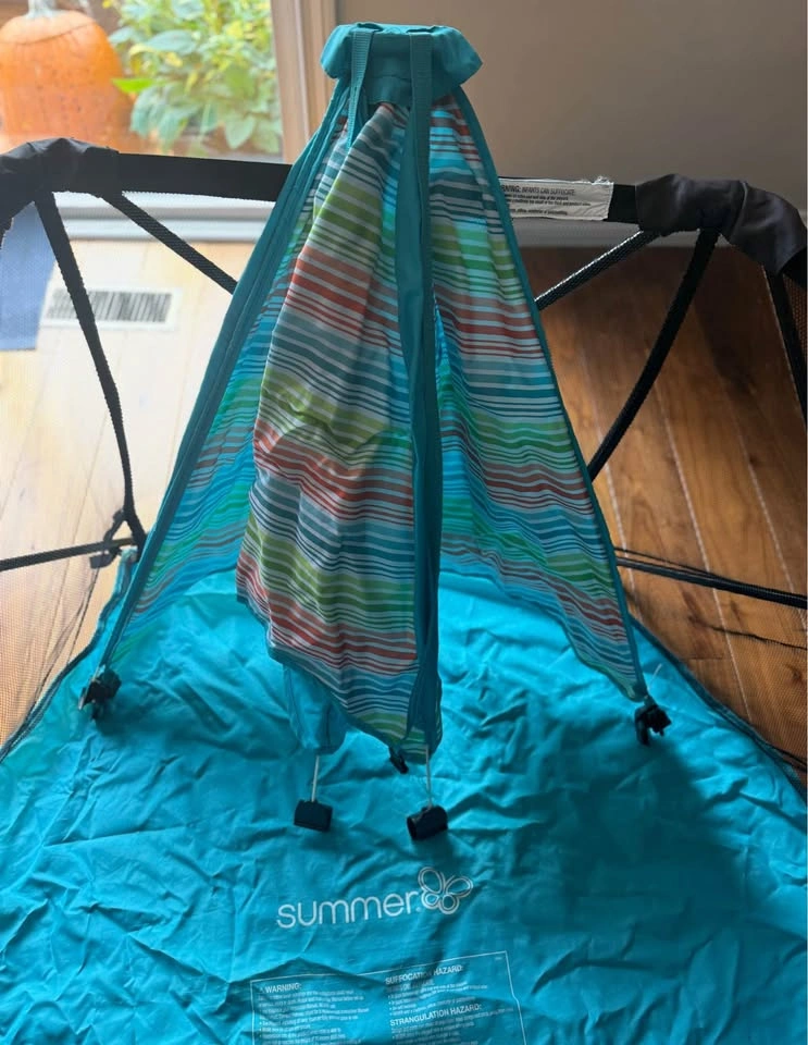 The Summer Infant Pop n Play Ultimate Playard allows you to easily create a safe portable play area for your child. The ultra-lightweight and compact fold playard can be set up and taken down in seconds, making it perfect for use at home, a day at the park, or a weekend at the beach. A removable sun canopy provides protection from harmful rays, and the water resistant floor helps keep baby dry even on damp grass. Airy mesh sides provide added visibility. A travel bag with shoulder strap is included for on-the-go convenience.