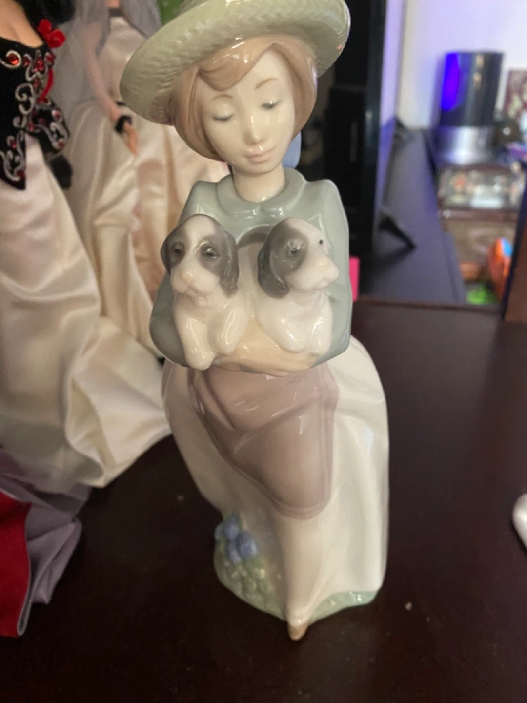 Selling a lovely NAO Lladro figurine of a girl holding two adorable puppies. It's in great condition and would make a wonderful addition to any collection. The figurine is marked "NAO Hand Made in Spain by Lladro DAISA 1991" on the bottom