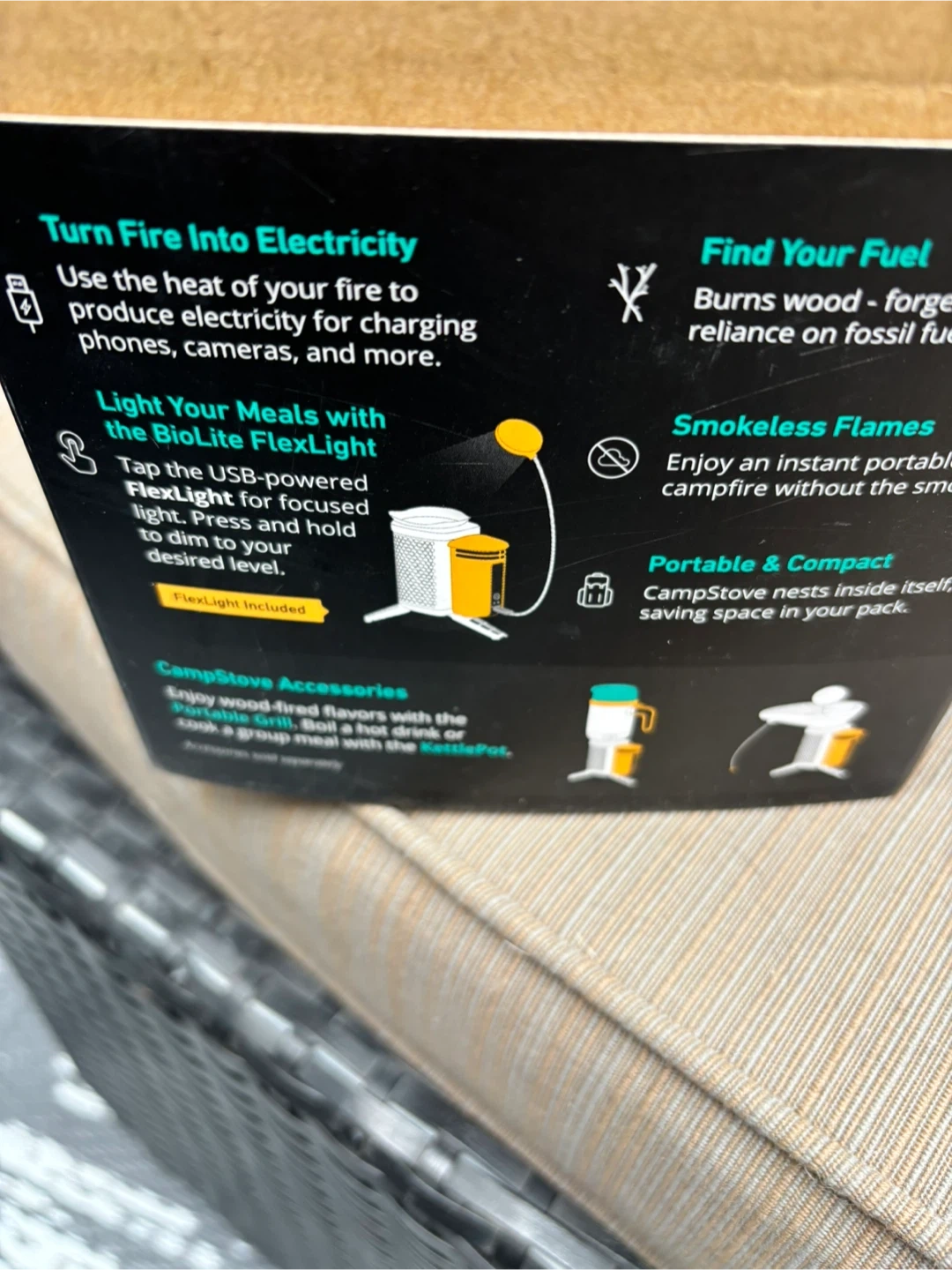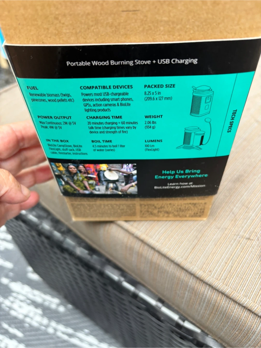 Get ready for your next camping trip with this BioLite CampStove 2+! It's a portable wood-burning stove that can also charge your devices via USB. The stove nests inside itself for compact storage, saving space in your pack. It also features smokeless flames and includes the BioLite FlexLight. The box includes the stove, Flexlight, stuff sack, USB cable, firestarters, and instructions.