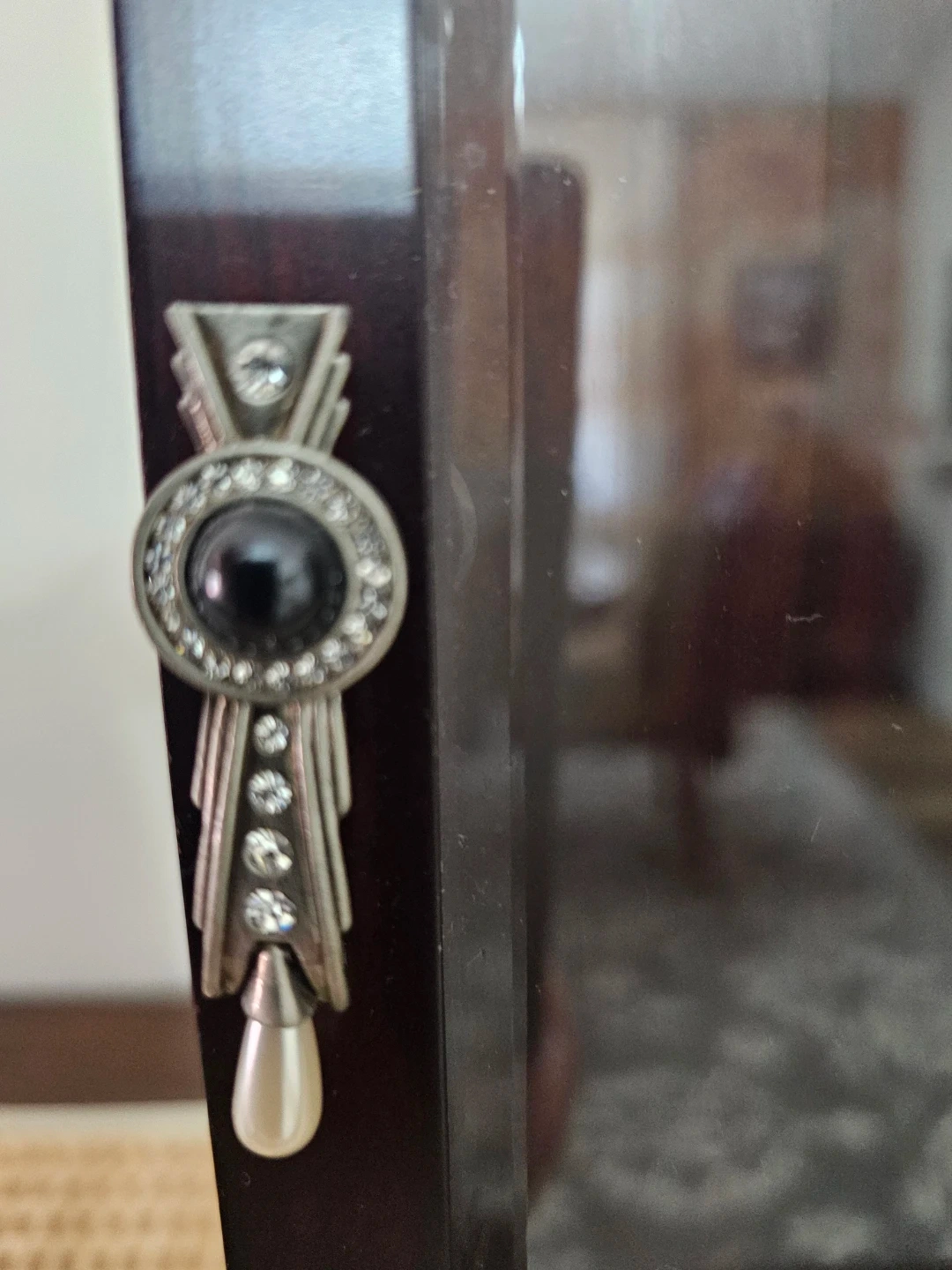 Here's a lovely jewelry display cabinet! It has a drawer at the bottom for extra storage. The cabinet is in great shape and ready to showcase your favorite pieces