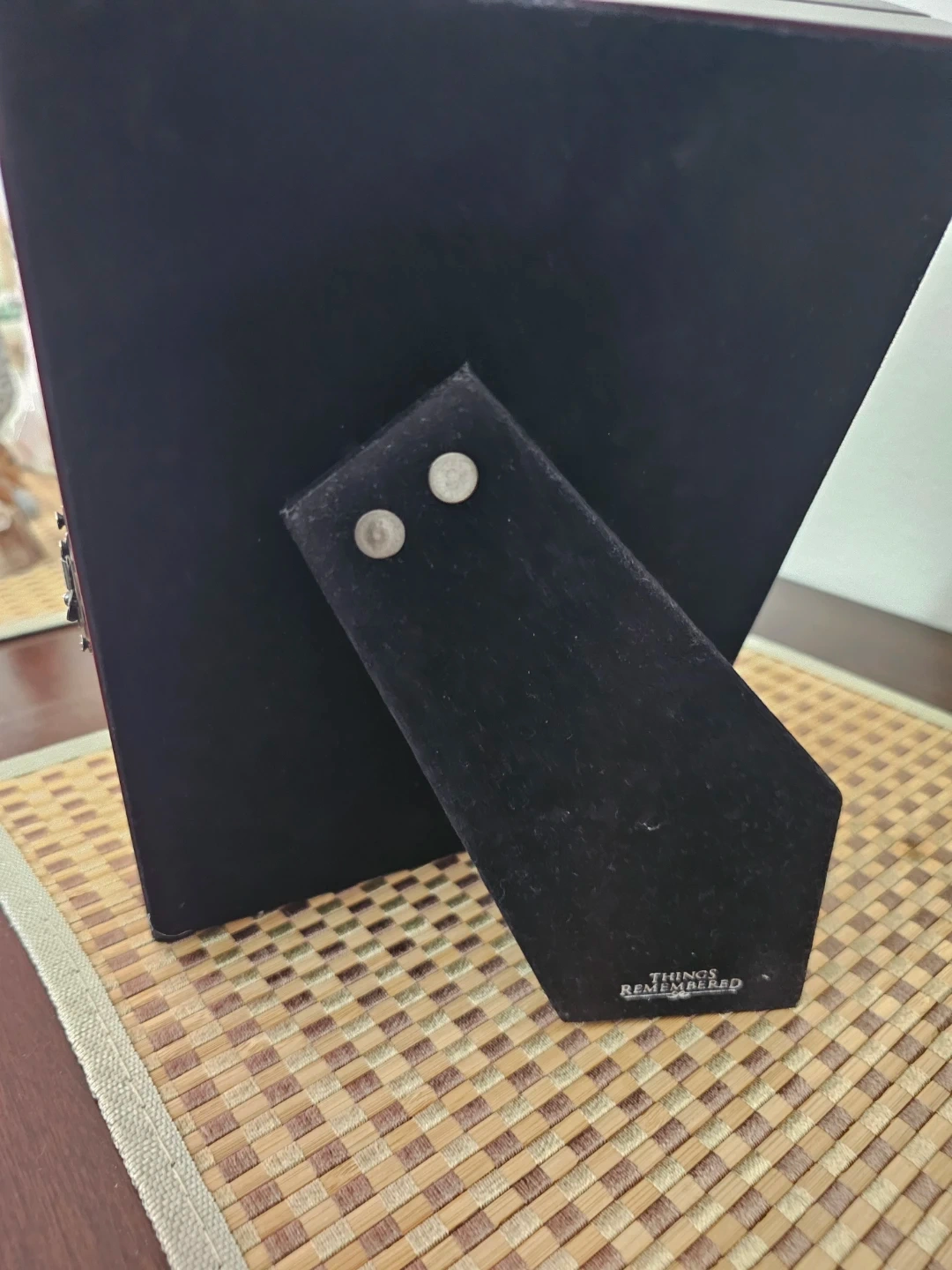 Selling a photo album from Things Remembered. It's in great condition and ready for your cherished photos! The album has a dark wood frame and a black velvet backing.