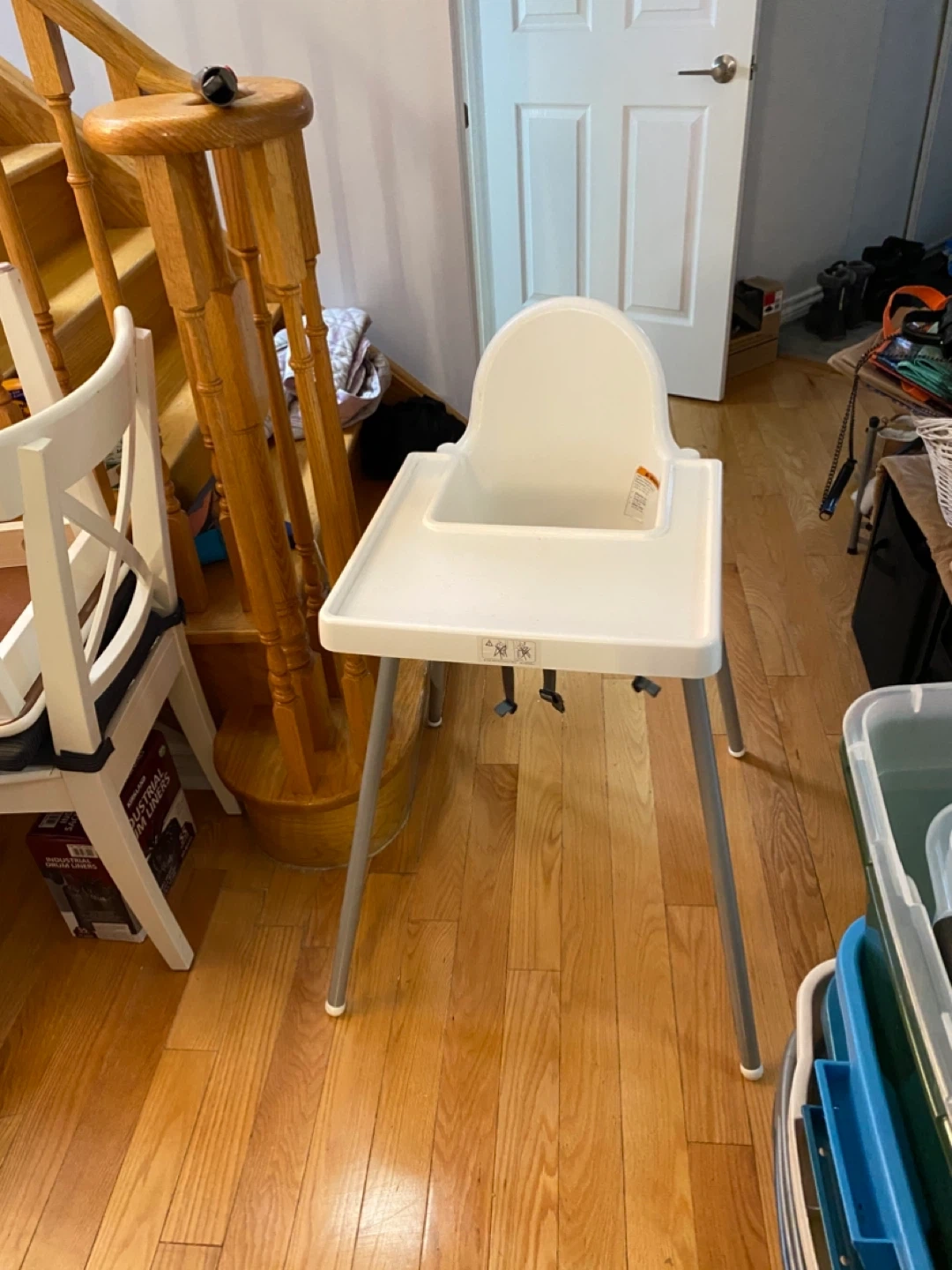 Selling an IKEA Antilop high chair in white. It's in great condition and perfect for your little one's meal times. Easy to clean and simple to assemble!