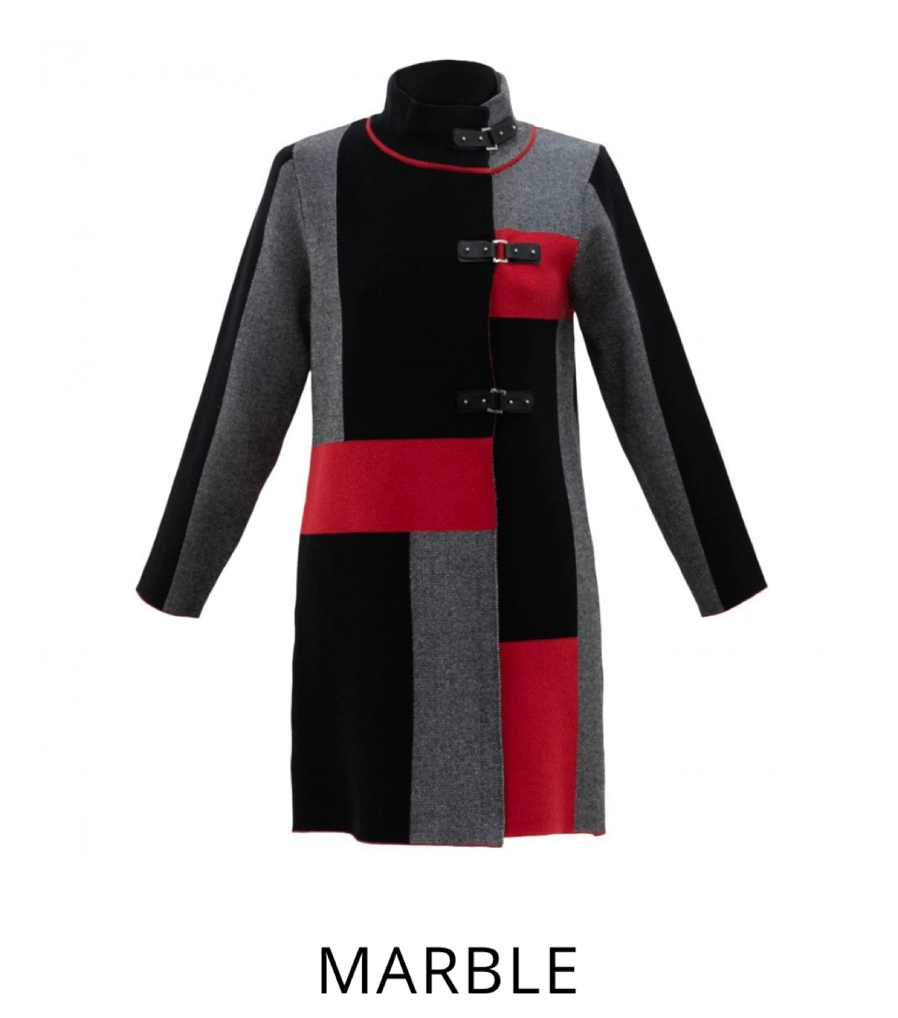 Here's a Marble tunic dress in a stylish colour block design! It features a unique combination of black, grey, and red. Perfect for adding a pop of colour to your wardrobe and making a statement!