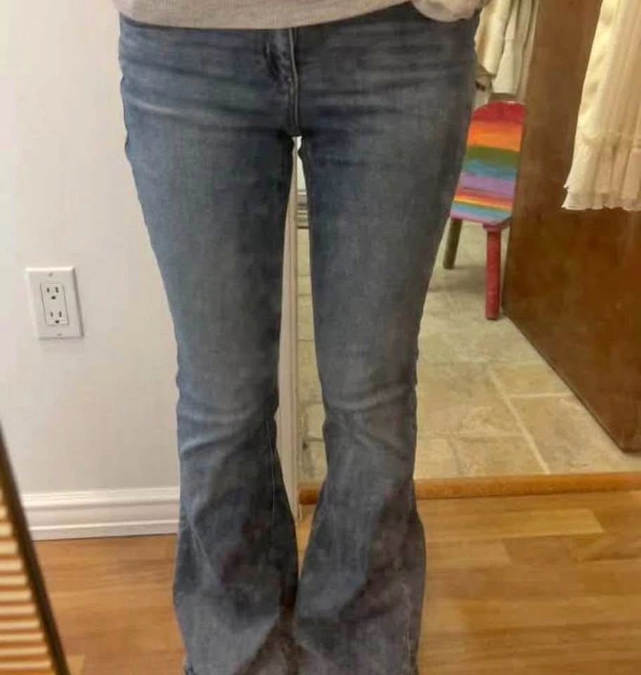 A bit rip at the bottom of the jeans, not noticeable when wearing. perfect for a pair of flares. its verryy flary!!!