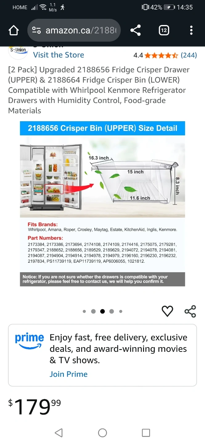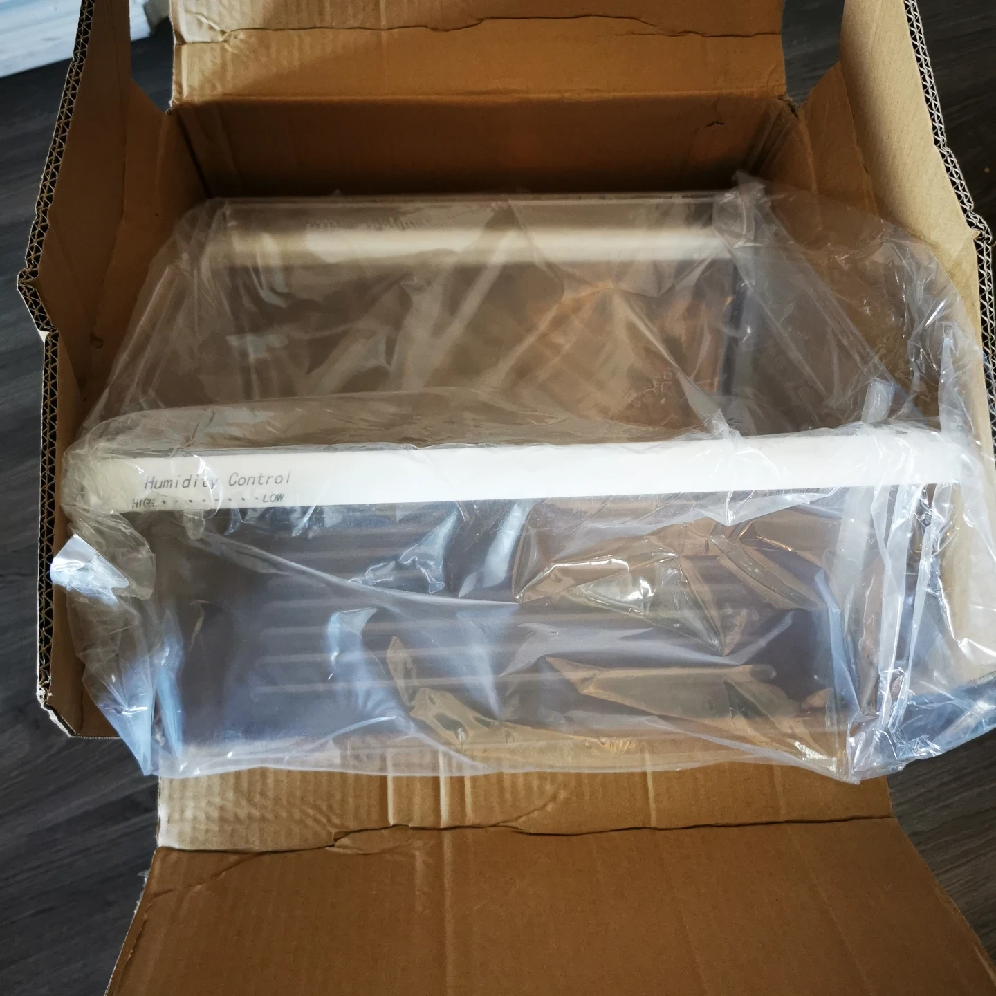 Selling a set of two fridge crisper drawers, in excellent condition! These are compatible with Whirlpool, Kenmore, Amana, Roper, Crosley, Maytag, Estate, KitchenAid, and Inglis refrigerators. Includes the upper and lower crisper bins. Originally bought for $179.99, these drawers are food-grade and come with humidity control to keep your veggies fresh. Comes in the original box!