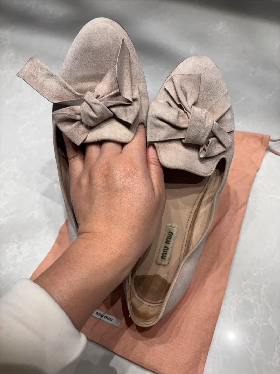 721These Miu Miu loafers are super cute and in great condition! They're a size 37 and feature a lovely suede material and embellished heels. Comes with the original dust bag