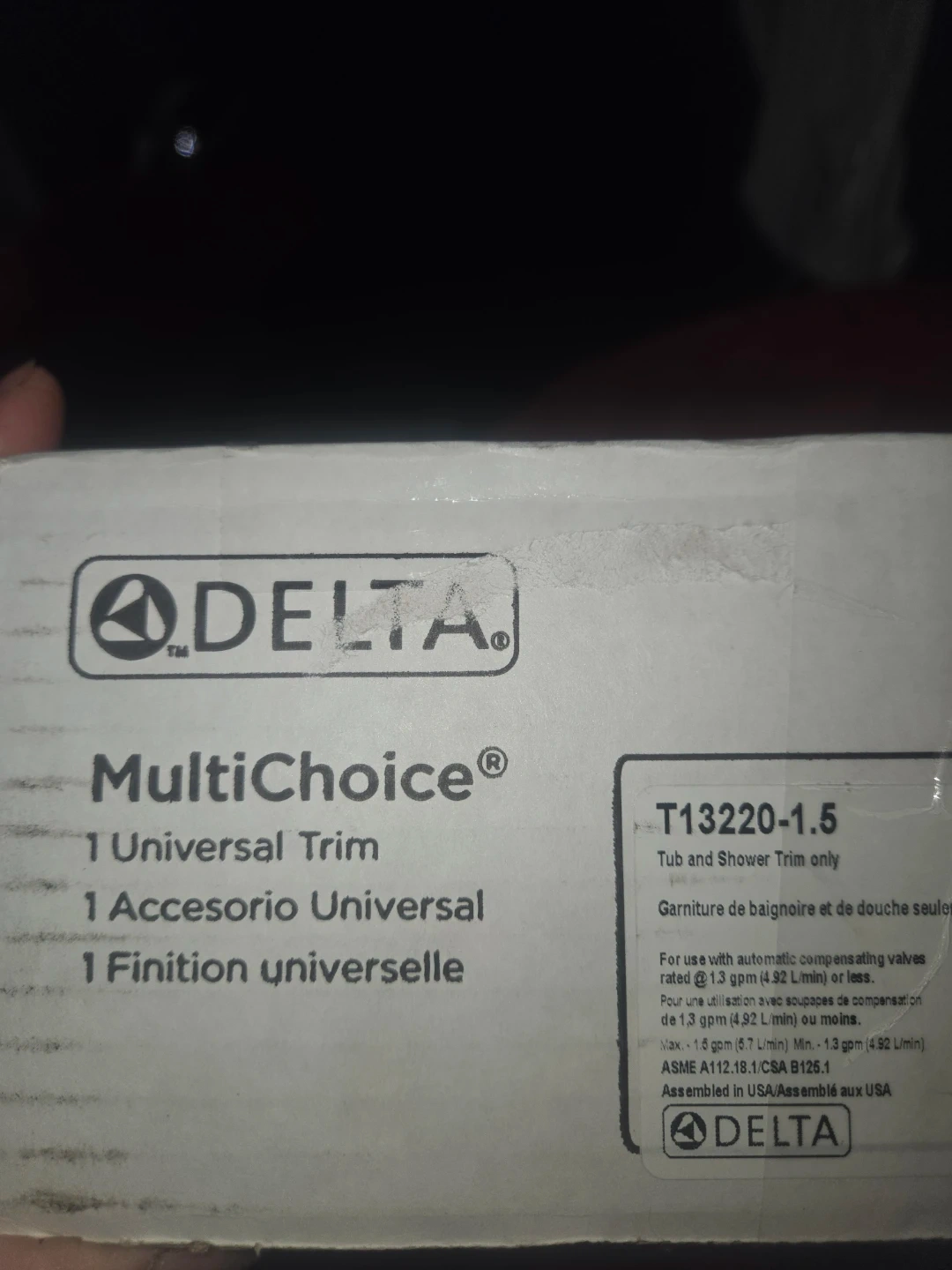 Selling a Delta Classic 13 Series Bath and Shower Trim Set in Chrome. This is a MultiChoice Universal Trim. The model number is T13220-1.5. Originally bought for $123. All components are included. My tub needed a Moen. Never used. New in box with manual, and receipt of purchase included.