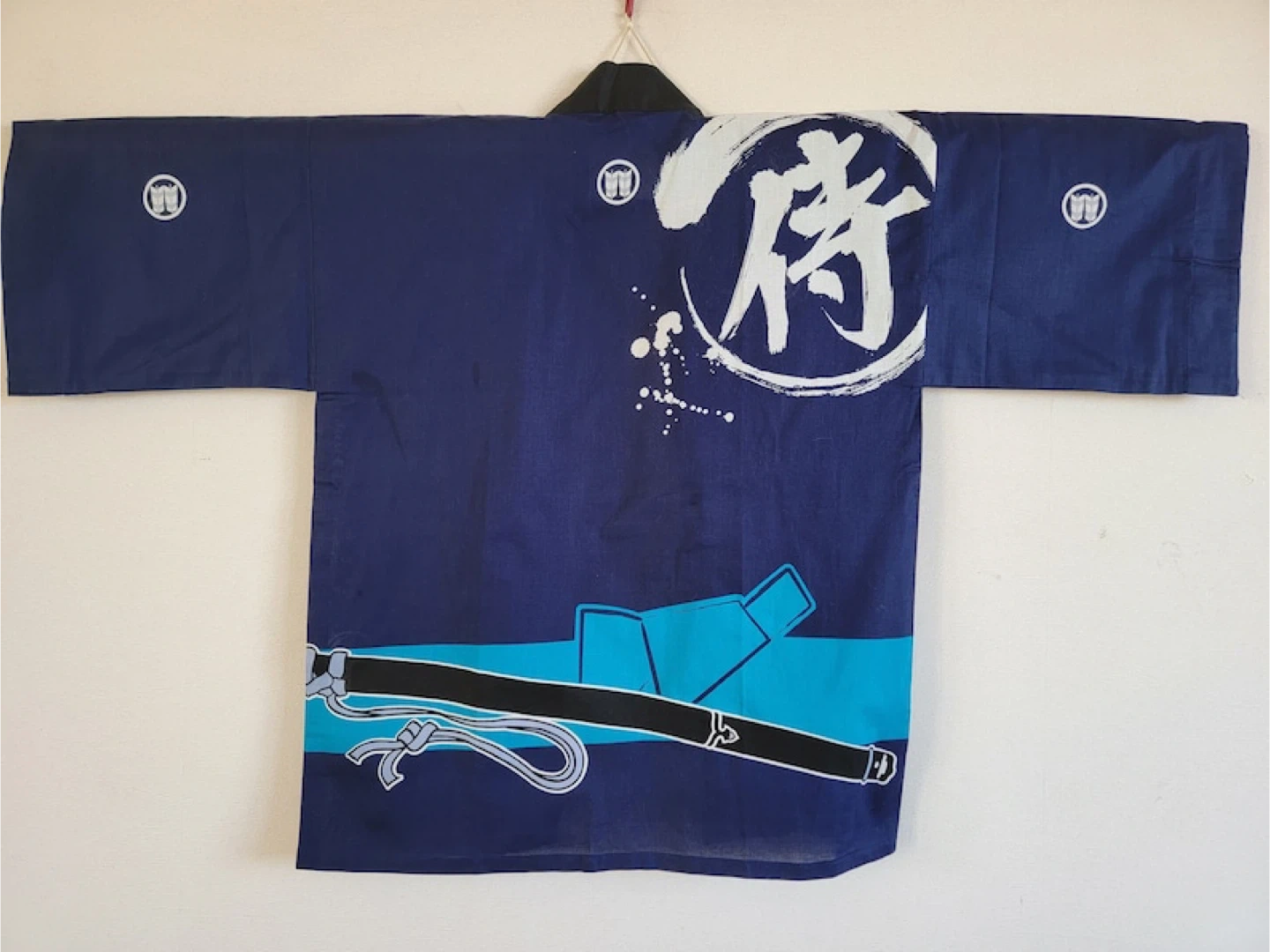 Festival Hanten Happi Coat, M Samurai Kanji Pattern
