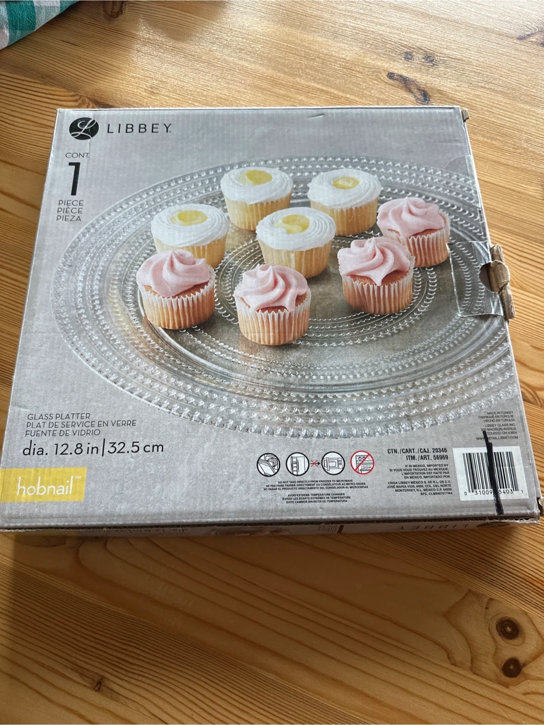 Selling a Libbey Hobnail glass platter! It's a single piece and measures 12.8 inches (32.5 cm) in diameter. The platter is new and comes in its original box, ready to display your favourite treats or desserts