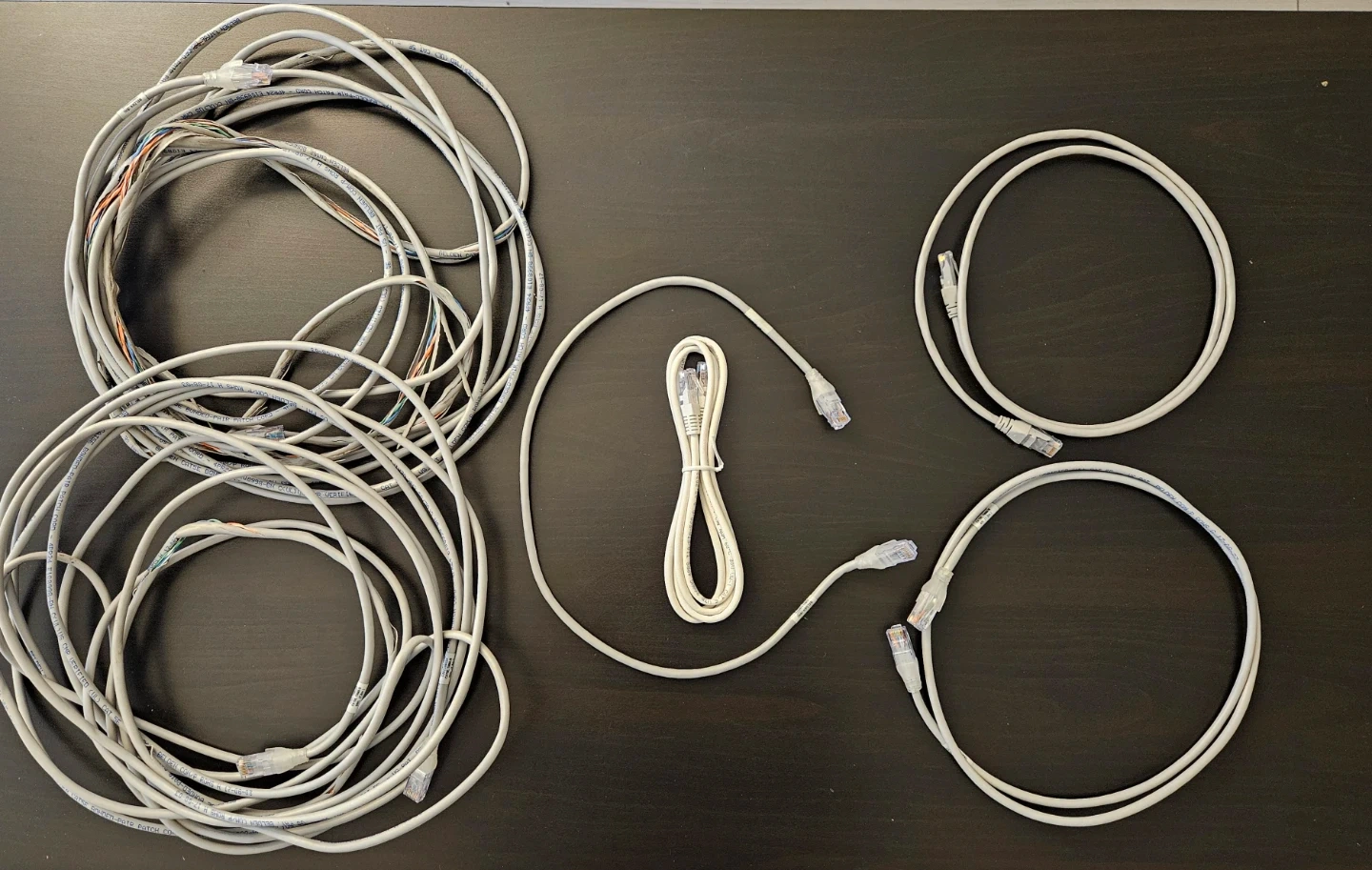 10Selling a collection of CAT5E Ethernet cables. Lengths include 1 x 2ft (0.6m) 3 x 4ft (1.2m) 2 x 25ft (7.6m) Great for networking needs at home or in the office