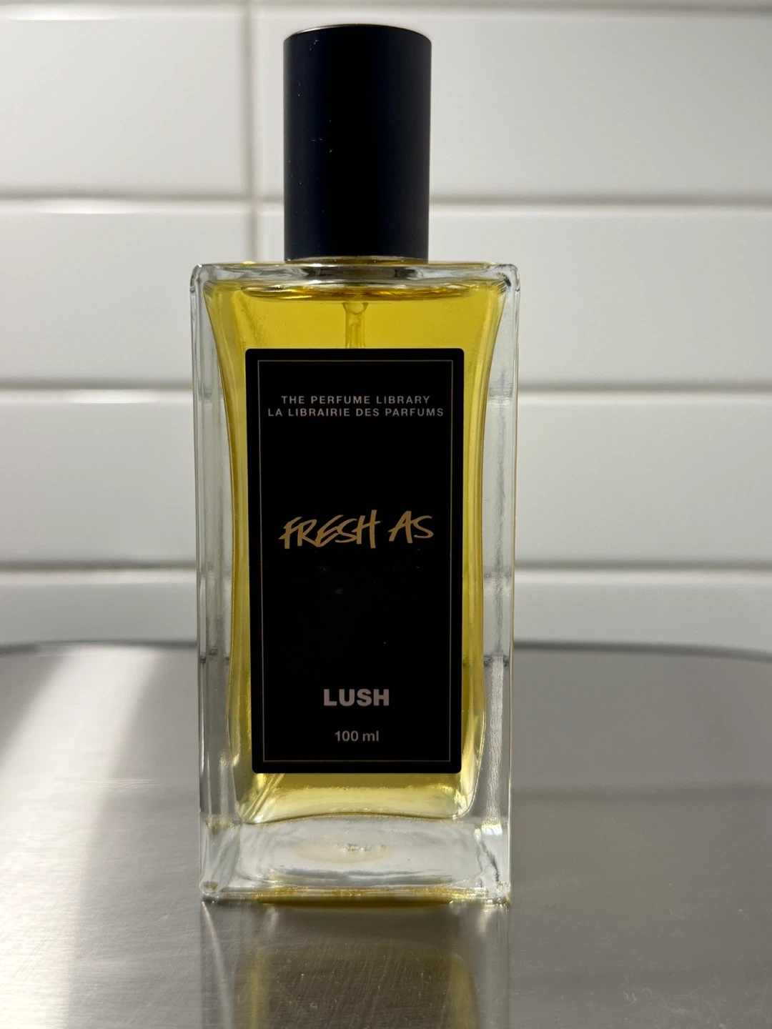 Selling a bottle of Lush's 'Fresh As' perfume. It comes in a 100ml bottle and is hand-blended with fine essential oils. It's a vegan and cruelty-free product. A refreshing scent to add to your collection!