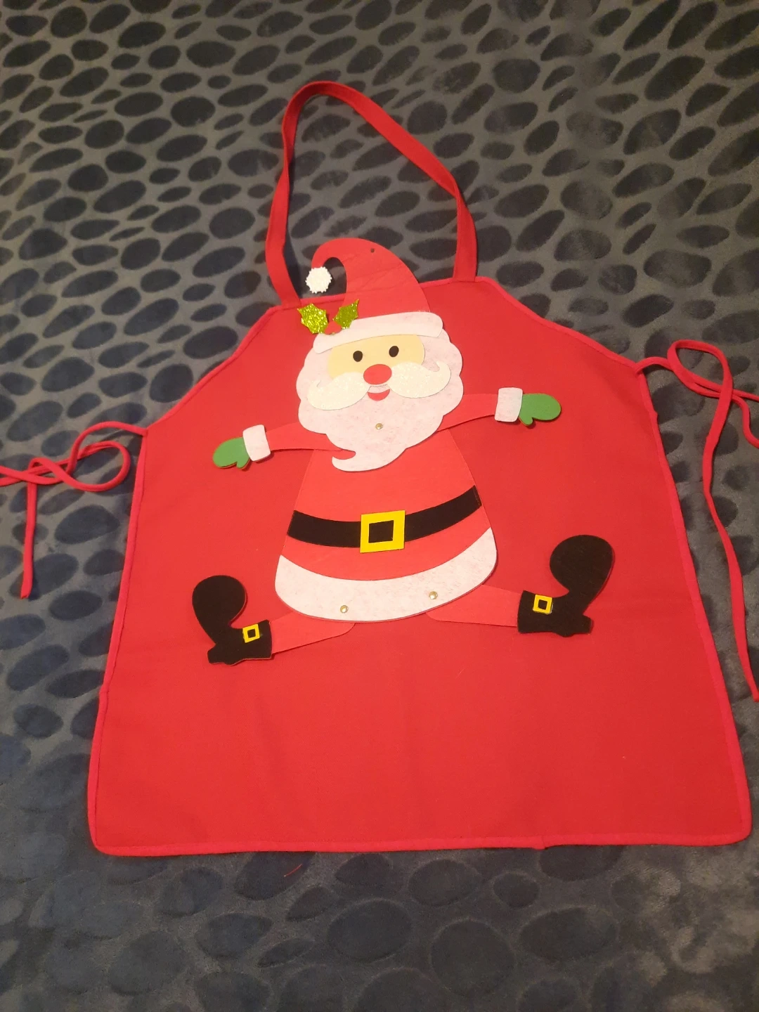 It's perfect for adding a touch of Christmas cheer to your kitchen. The apron features a cute Santa Claus design.