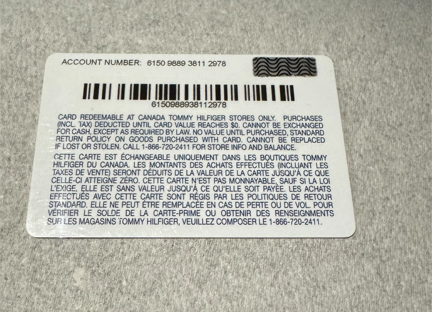 Selling a Tommy Hilfiger gift card with a balance of $500. It can be redeemed at any Tommy Hilfiger store in Canada. This card is perfect for shopping at Tommy Hilfiger! Now only selling $430