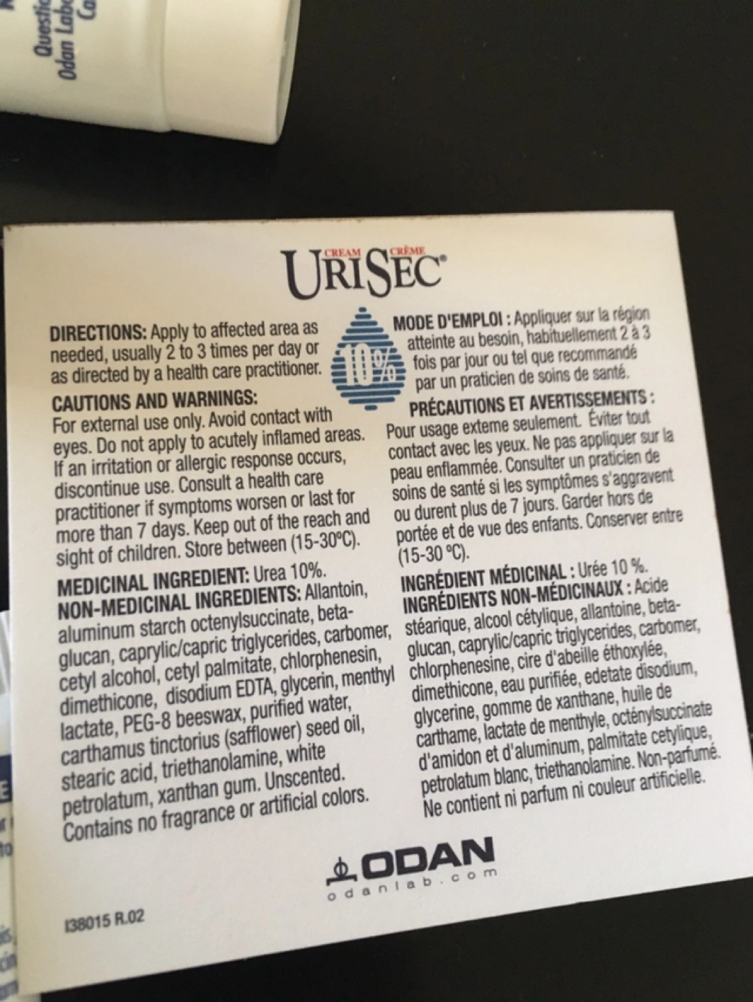 I have several tubes of Odan Lab Urisec Cream, a therapeutic moisturizer for dry skin conditions. The cream contains 10% urea. Good for gift for outside canada