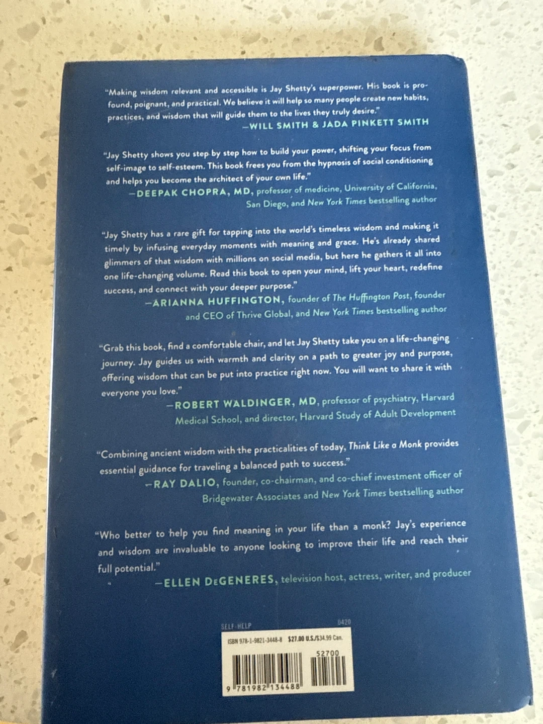 Selling a copy of 'Think Like a Monk' by Jay Shetty! This self-help book is all about training your mind for peace and purpose every day. A great read if you're looking for some guidance and wisdom!