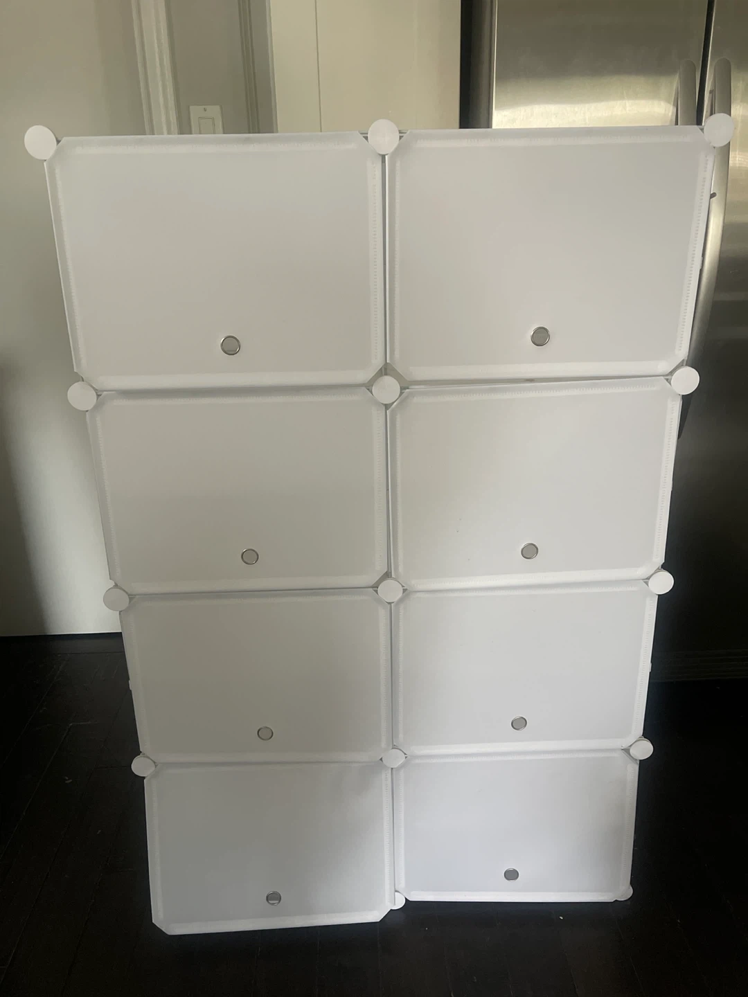 Selling a modular 8 tier shoe storage shelf, perfect for organizing your shoes! It's white and in great condition. Can hold up to 32 pairs of shoes. Already assembled and customized to fit your needs. Great for closets, kids rooms, or anywhere you need extra shoe storage!