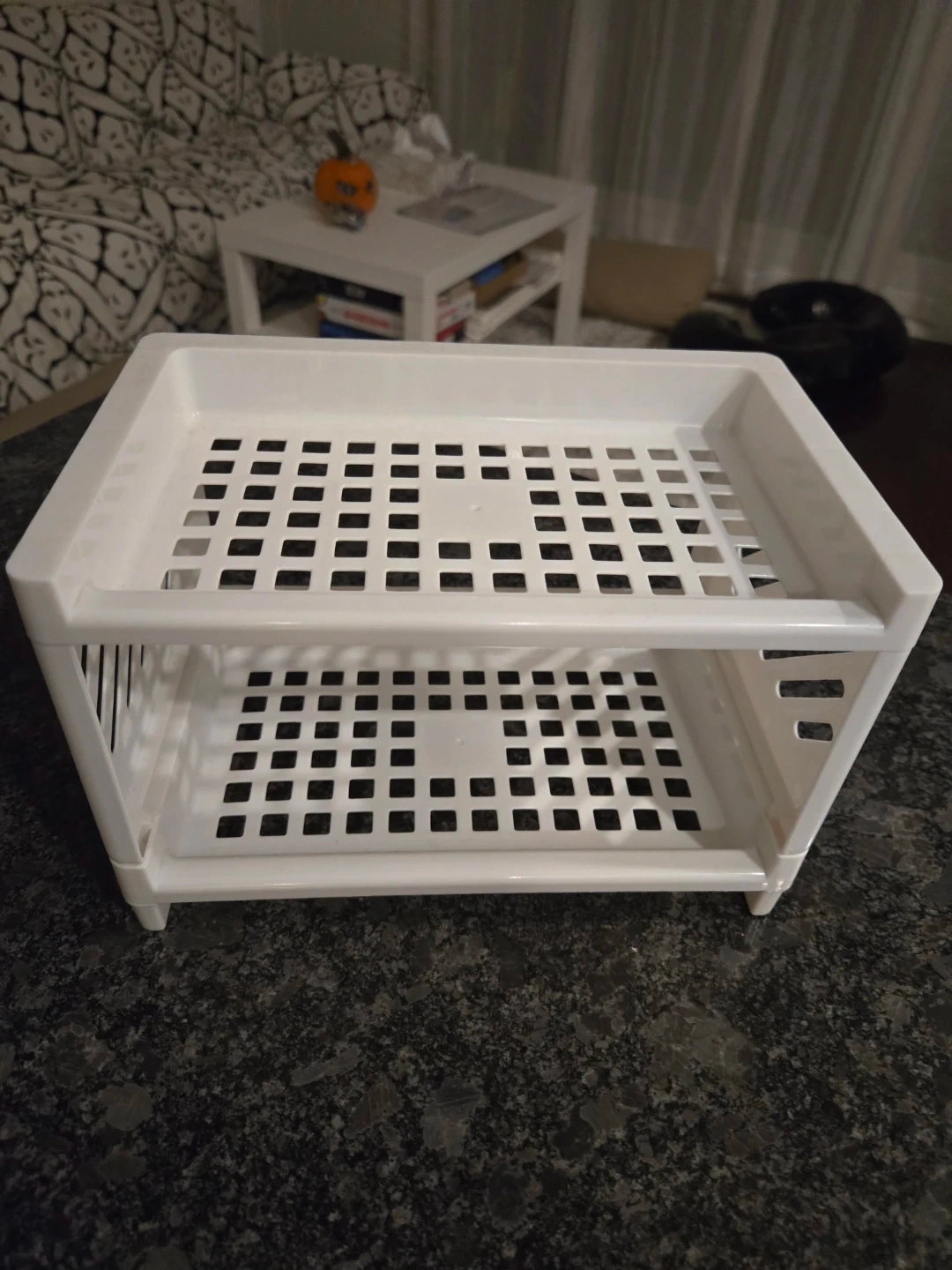 Looking to declutter your space? I'm selling a handy white, two-tier stackable shelf organizer. It's perfect to organize your small items (cosmestic) on your table.