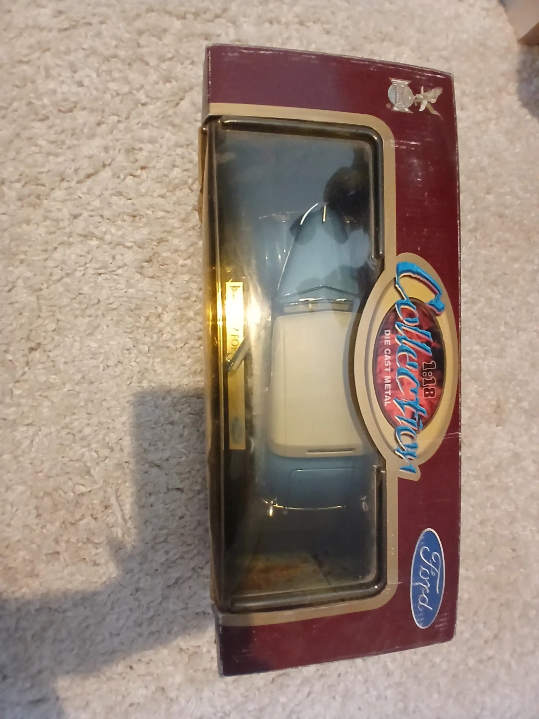 Selling a Ford 1937 Convertible diecast model car. It's a 1:18 scale model from Road Legends. The car is blue with a tan roof and comes in its original box. Great for collectors!