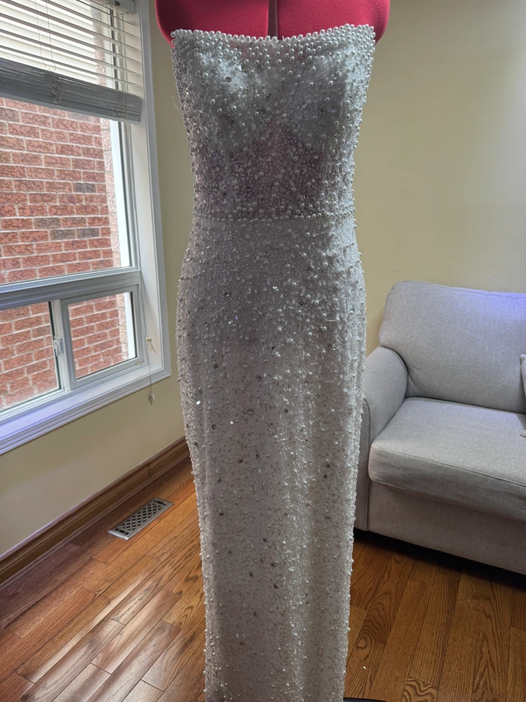 Selling a beautiful beaded wedding dress! It's in great condition and ready for its special day. The dress features intricate beading throughout, creating a stunning and elegant look. Perfect for a bride looking for a unique and memorable gown ( free shortening available)