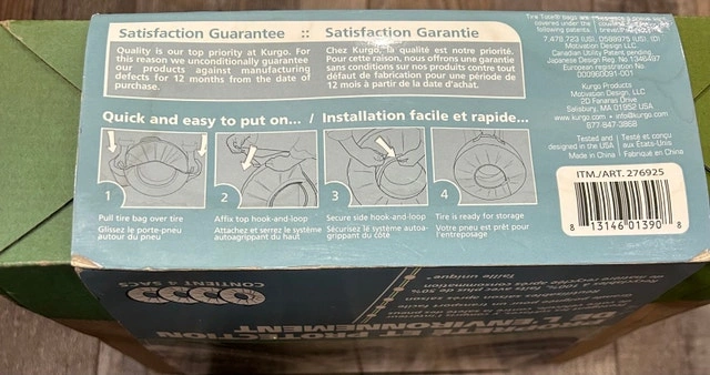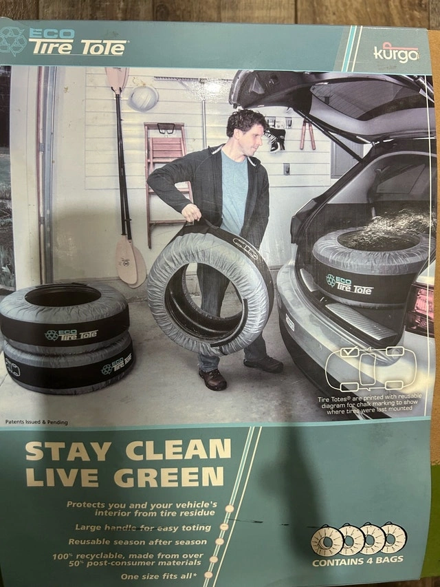 New Open Box. Box was opened, one tire tote was removed and tried on tire (my tires are too small and didn’t fit properly). Tire totes protect clothing from tire and brake residue when changing or transporting tires. Tire bag makes it easy to carry tires & extends life of tire; perfect for seasonal, event, or spare tires. Tire cover protects vehicle interior from tire and brake residue. Product comes with guaranteed hassle-free Kurgo Lifetime Warranty against manufacturer defects. Fits tires 22" to 31" in diameter; for further clarification regarding how to properly measure your tire and ensure an accurate fit. For Sale By: Owner