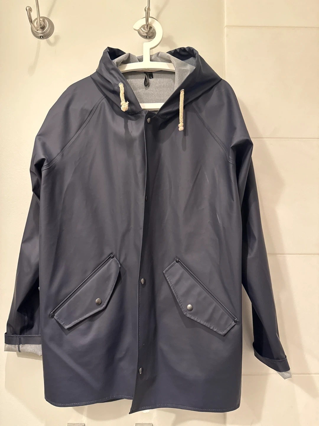 Selling a gently used Elka raincoat in size L. It's a stylish and practical jacket for those rainy days. Perfect for staying dry and looking good!