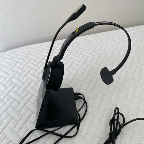Experience crystal-clear audio with the Jabra Engage 75 Mono wireless headset. Designed for both professional and home use, it offers versatile connectivity options including Bluetooth ( in base), USB Deskphone, and Softphone, ensuring seamless integration with your existing devices. The dual-microphone setup is engineered to deliver superior sound quality, whether you're on a conference call or enjoying a solo listening session. The headset features a comfortable headband and ear-pad design, providing extended wearability for long meetings or immersive listening sessions. The Jabra Engage 75 is a unit that's both Ear-Pad (On the Ear) and delivers a mono sound experience, perfect for focused audio without the distraction of ambient noise. This item is lightly used and does not come in original box.