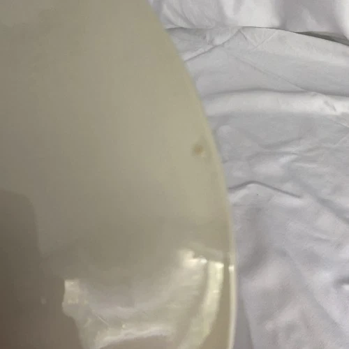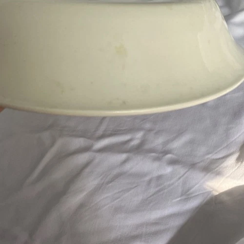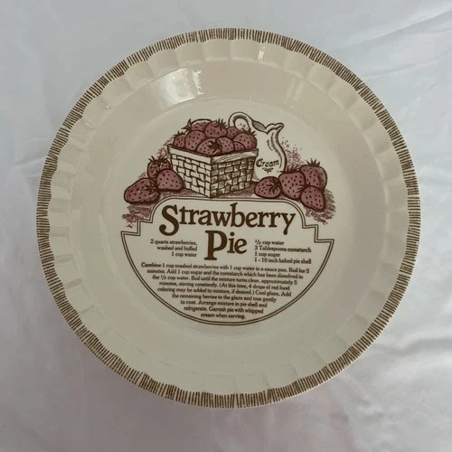 Craft your next masterpiece in the kitchen with this classic cream-colored strawberry pie plate from Royal China Jeannette Corporation. This round ceramic pie dish is a must-have for any baking enthusiast and is suitable for use in both electric and microwave ovens. Its glaze coating ensures easy release and a delightful presentation for your desserts. This pie plate, made in the United States, comes with a convenient recipe, making it a perfect addition to your bakeware collection. Whether you're a seasoned baker or just starting out, this durable and lightweight (.92 Kg) pie dish, designed for single unit quantity, will be a timeless companion for your culinary adventures. Some signs of wear and natural inclusions in the glaze. See pics.