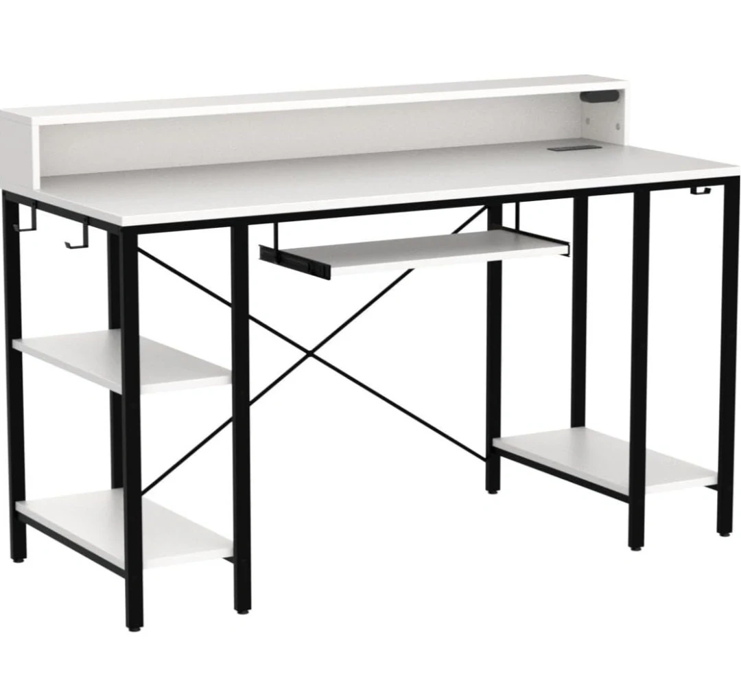 - shelves on both sides to store books, office supplies, games and PC tower.